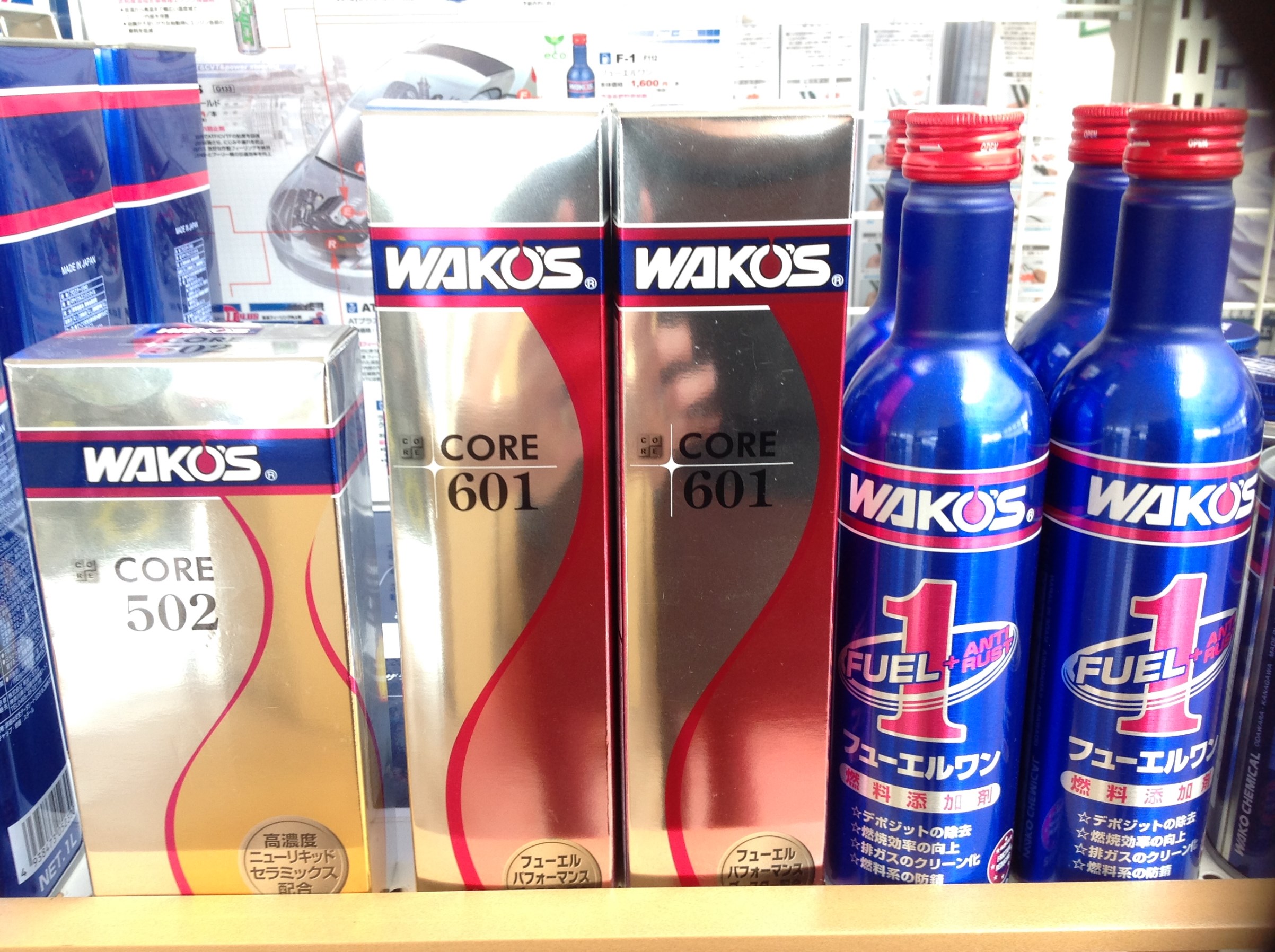 当店では、「CORE 502」エンジン向上剤・「CORE 601」燃料添加剤の2種類をワコーズのカタログにも掲載していない裏メニューとして扱っています!