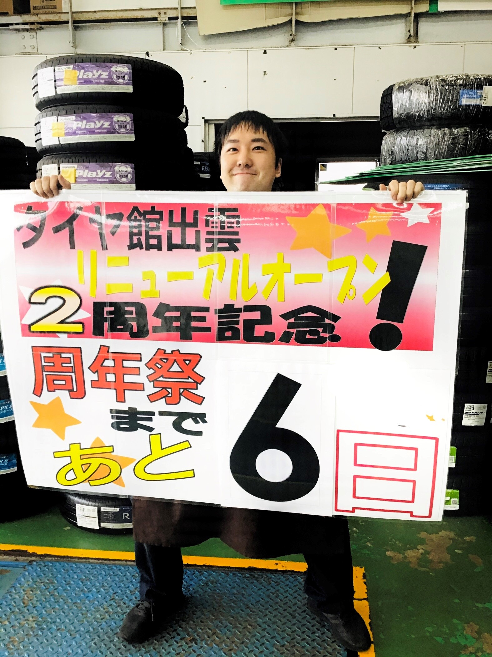 周年祭まであと6日!! ポスト 2020年9月19日 こんにちは!タイヤ館出雲です! 周年祭まであと6日と迫ってまいりました!!準備も大詰めの段階まできました! 当日は周年祭特別価格でタイヤや用品をご提案させていただきます! 抽選会もありますので僕たちスタッフもワクワクが止まりません!! 25,26,27日は是非是非、タイヤ館出雲までお越しください!!! 担当:曽田