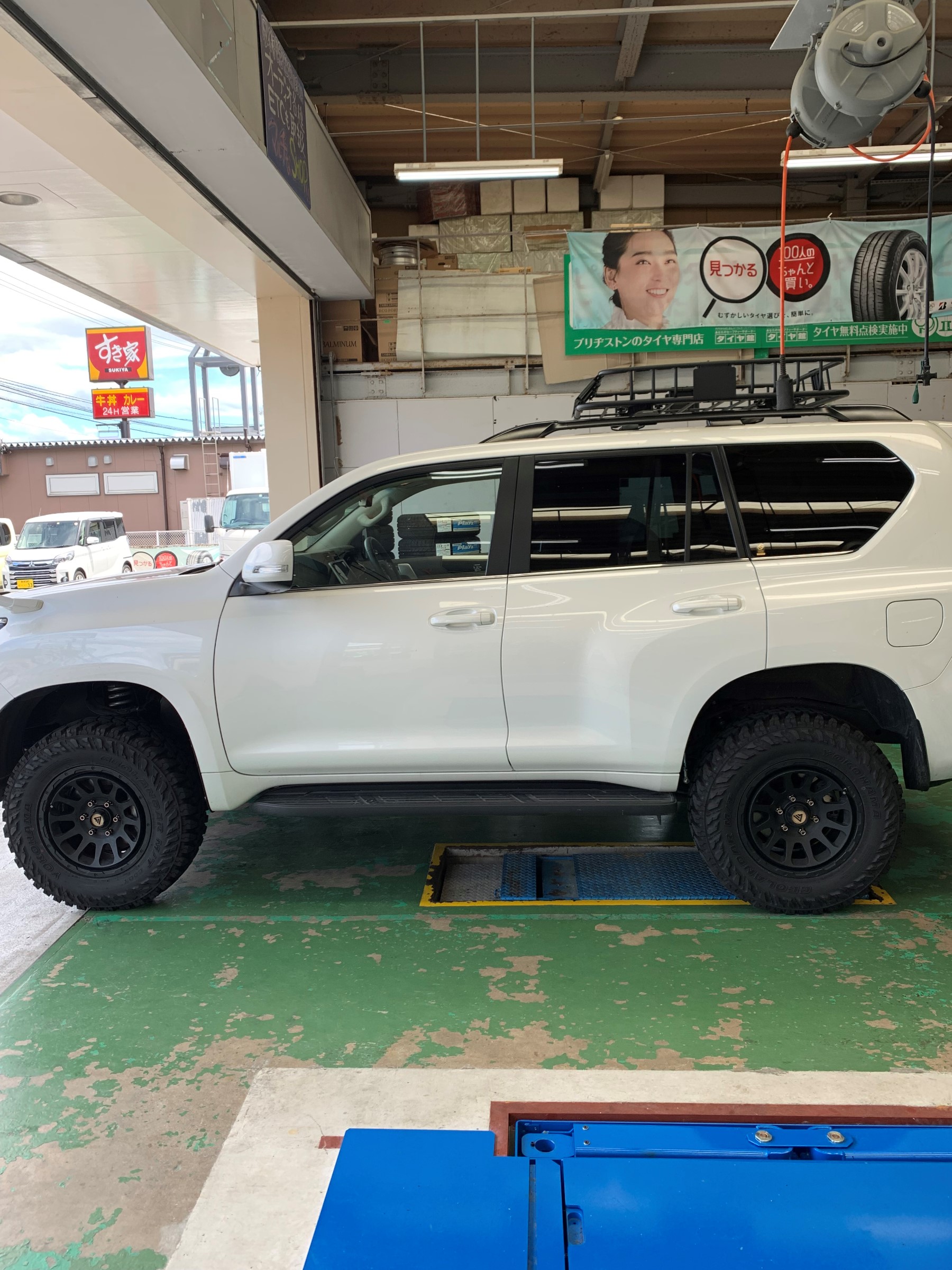 プラドはどうしても純正で車高が前下がりなので、そこを改善したいとご相談を受けて取付したのが、