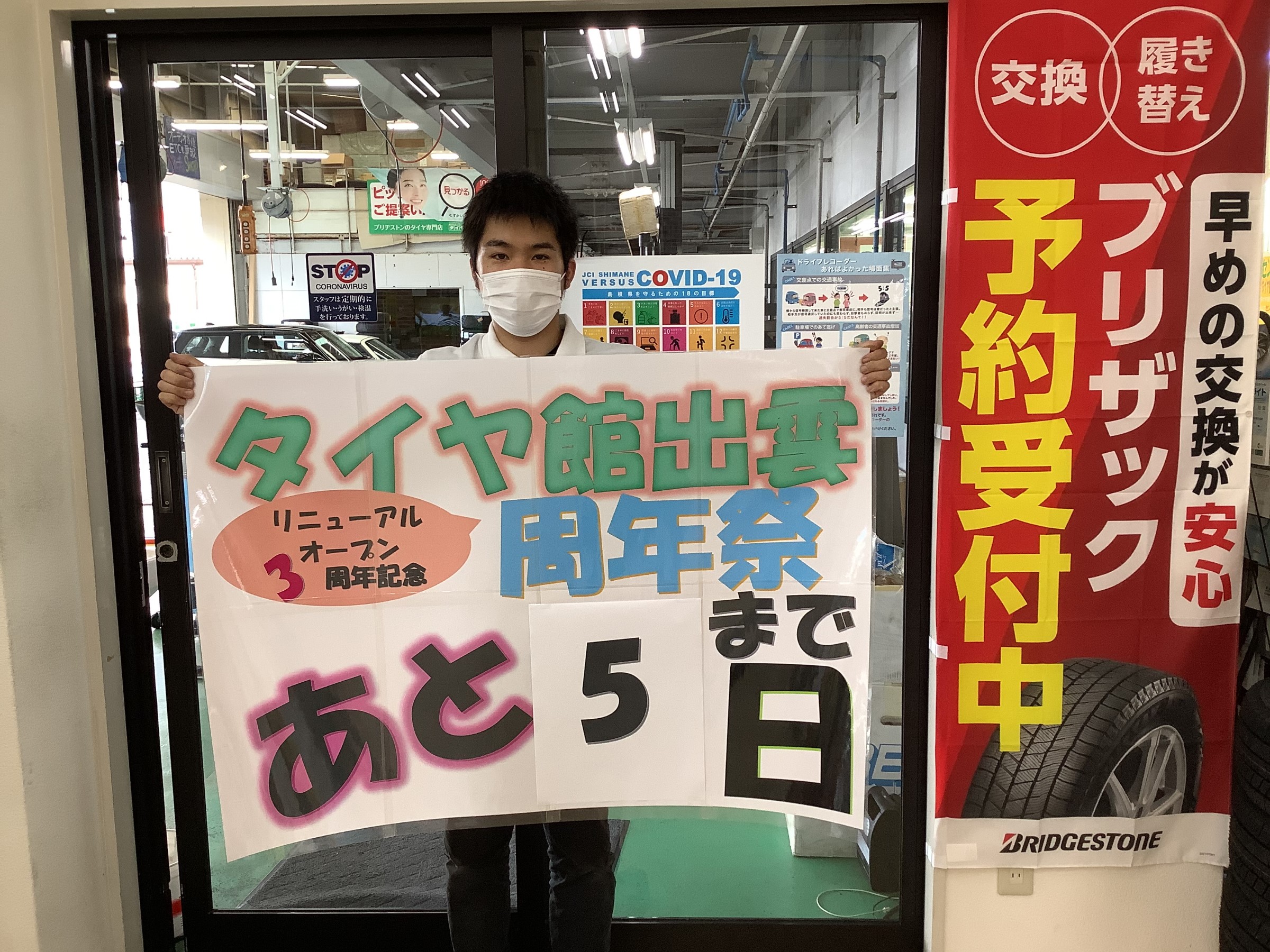 周年祭まであと5日! ポスト 2021年9月26日 こんにちは、タイヤ館出雲です! 周年祭まであと5日です(*'▽') 台風が近付いてきている模様です… 当日は絶対に晴れてほしいですね(^^;) 天気など関係なくお客様に楽しんでいただけるように スタッフ全員で盛り上げていきますので 皆様のご来店心よりお待ちしております! ご家族揃ってお越しください♪