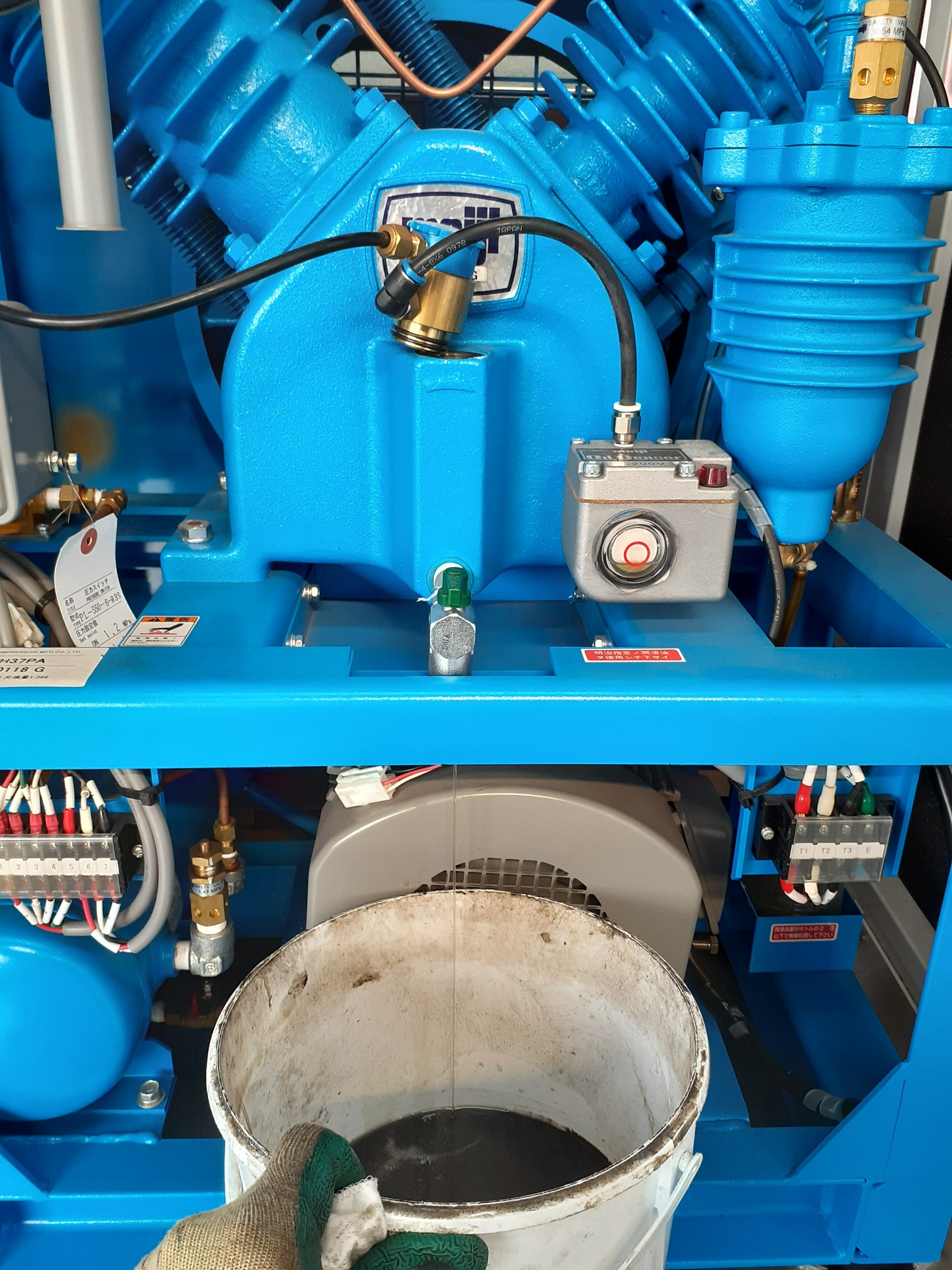 続いてコンプレッサーオイルの交換です。