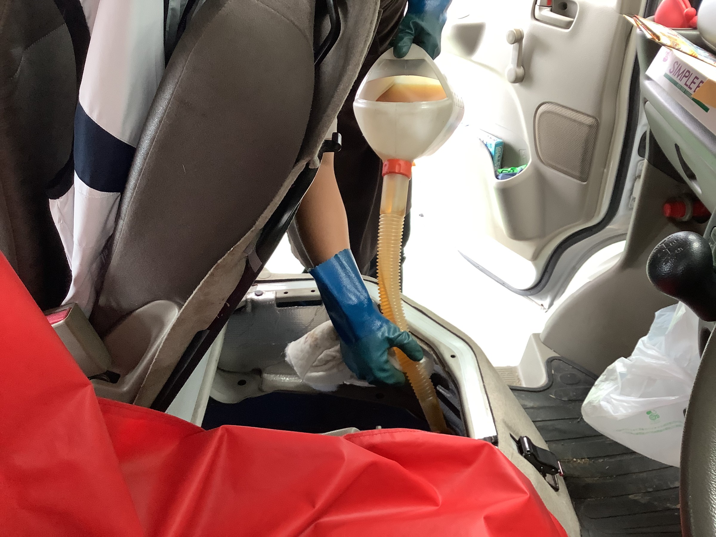 オイル交換をしたのに下の方に残った汚れたオイルと