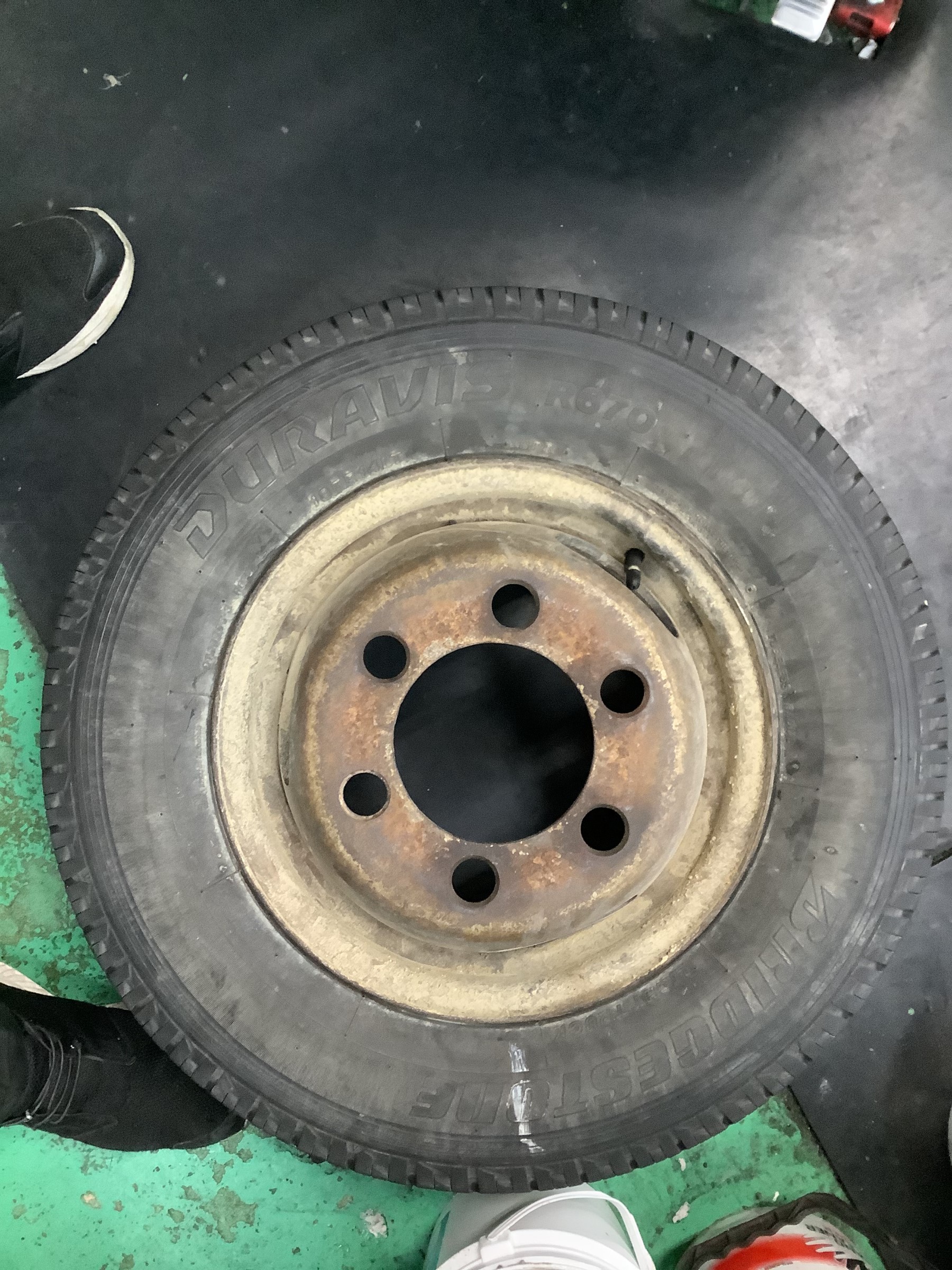 今回はトラックの後輪タイヤのパンク修理を行いました!