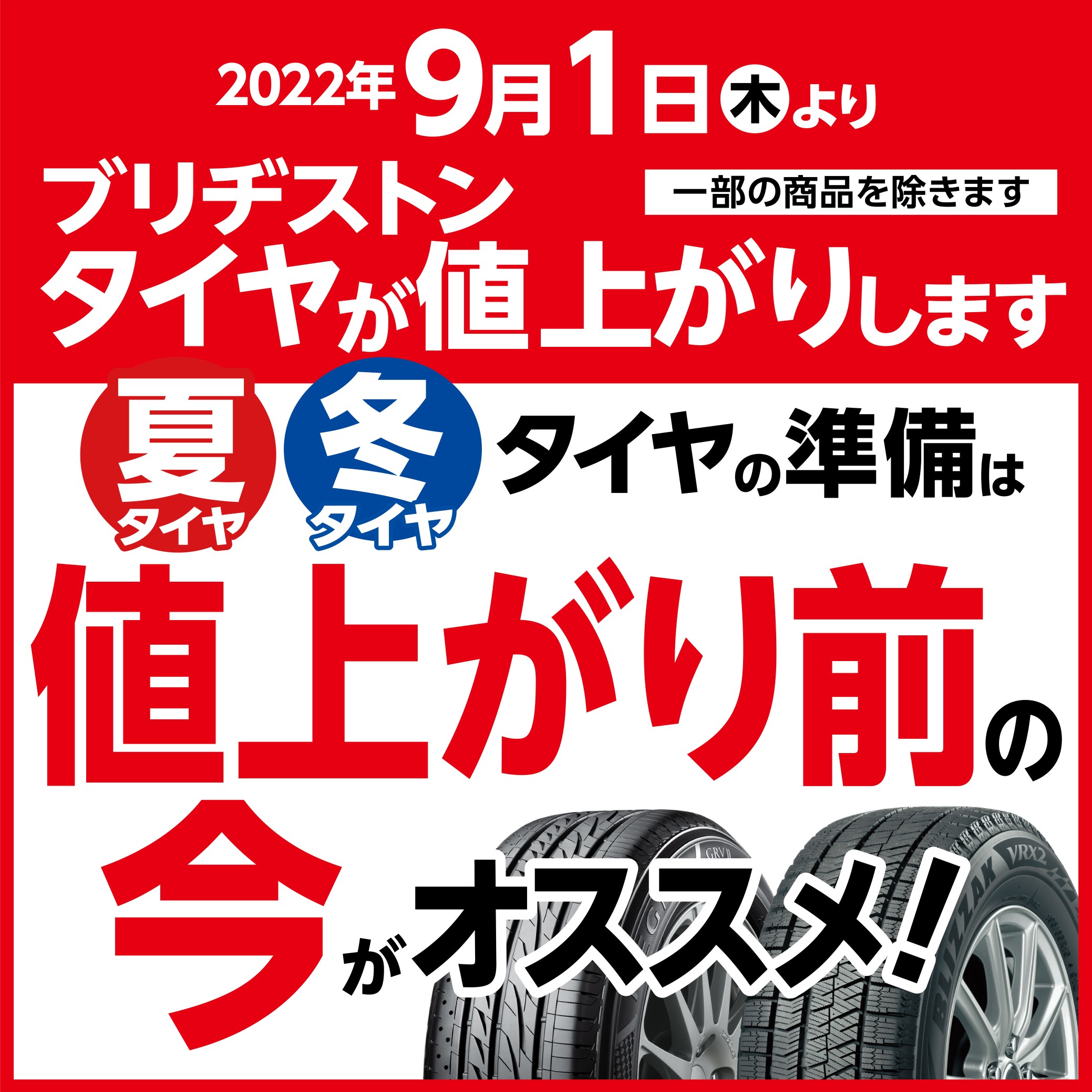 夏・冬タイヤ同時に値上げしますので是非8月中にお買い求めください↑↑