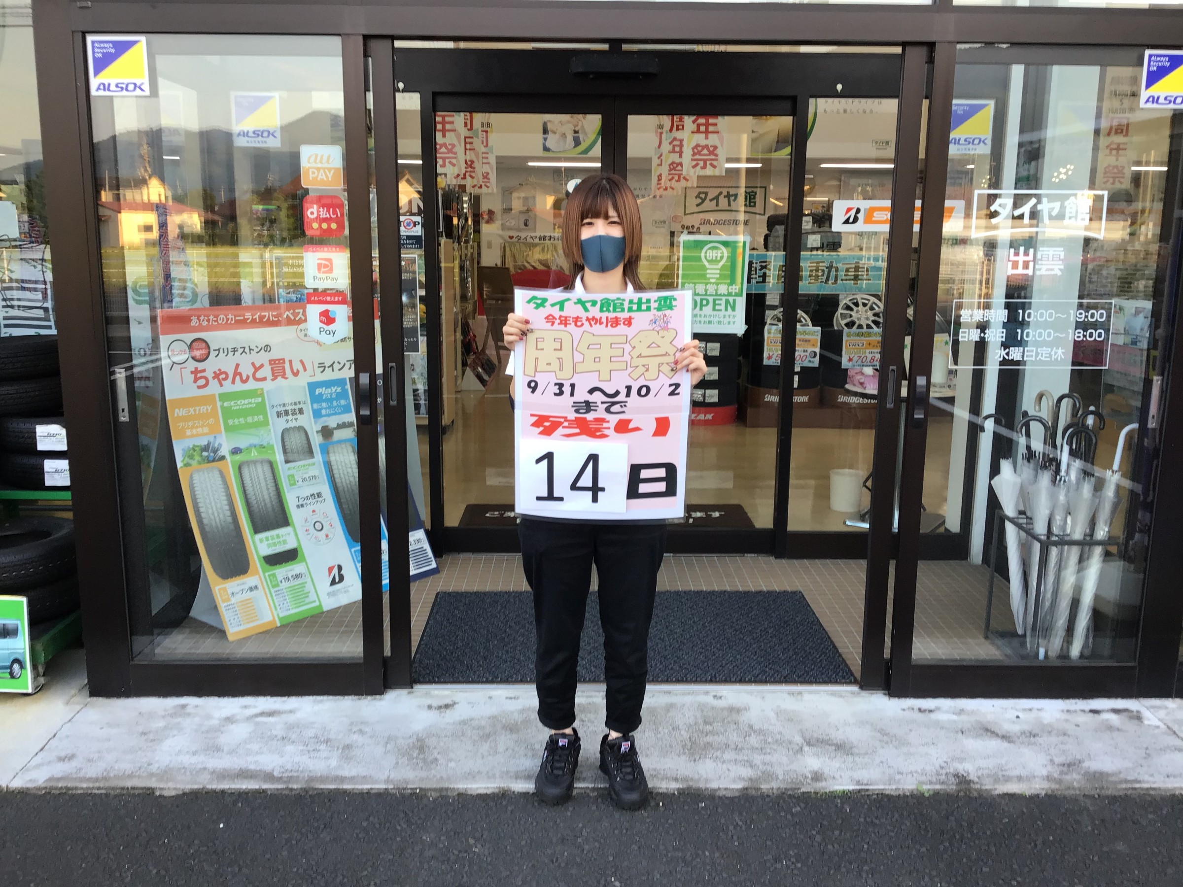 周年祭まで!! ポスト 2022年9月16日 こんにちは、タイヤ館出雲です♪ 周年祭まであと14日になりました(/・ω・)/ 年に一度のお得なイベントです! 当日は皆様に楽しんでいただけるような内容も たくさん用意しております! ご家族揃ってお越しください(*‘ω‘ *) 担当:今岡