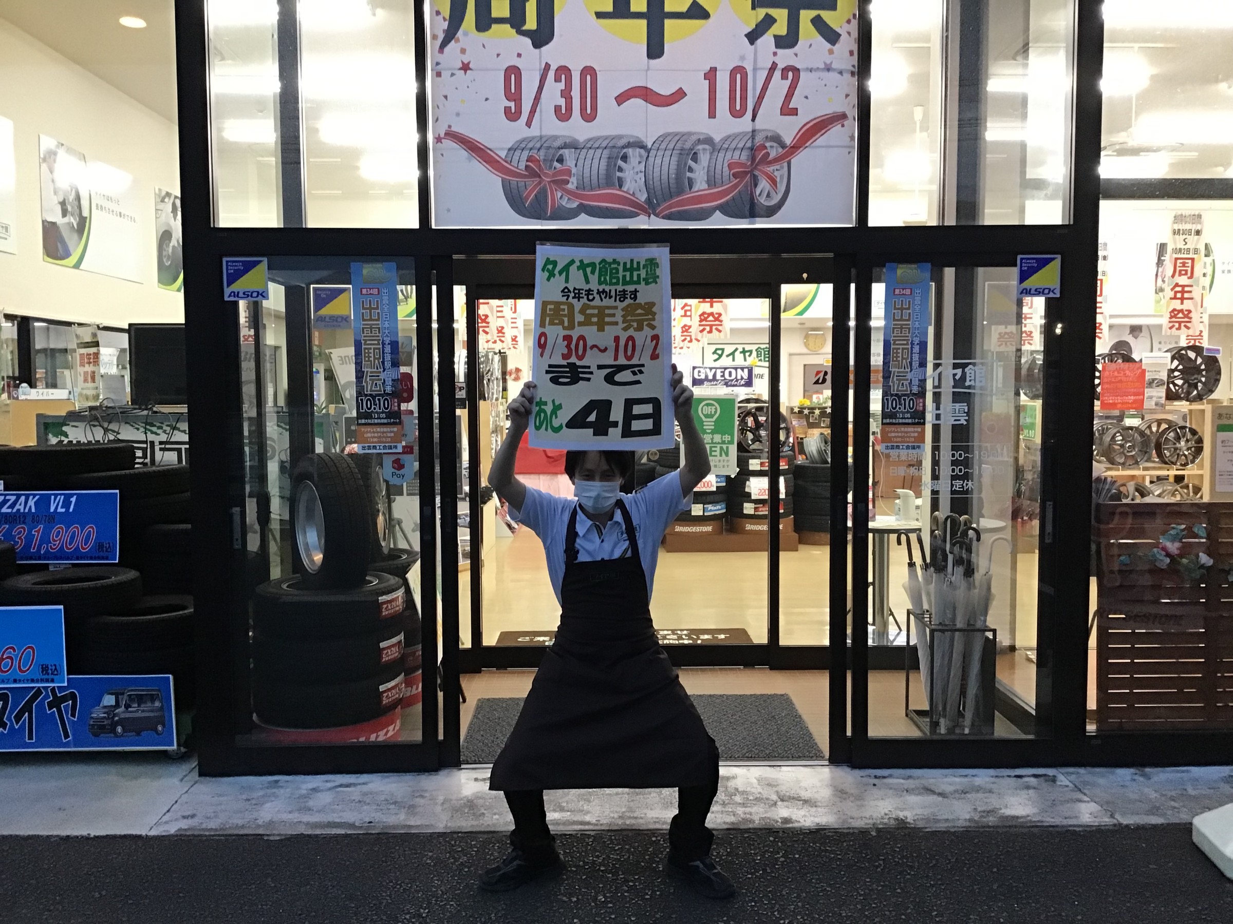 周年祭カウントダウン! ポスト 2022年9月26日 いつもありがとうございます。 タイヤ館 出雲です。 年に一度の周年祭まで残すところあと4日! 9月も終盤で気温も下がってきました(((>へ<))))ガクブル 皆様もお身体に気を付けて! 周年祭ではお得で楽しいイベント満載で皆様のご来店をお待ちしております! 【営業時間】月~土曜 10:00~19:00日曜・祝日 10:00~18:00【定休日】毎週水曜日 担当:土谷