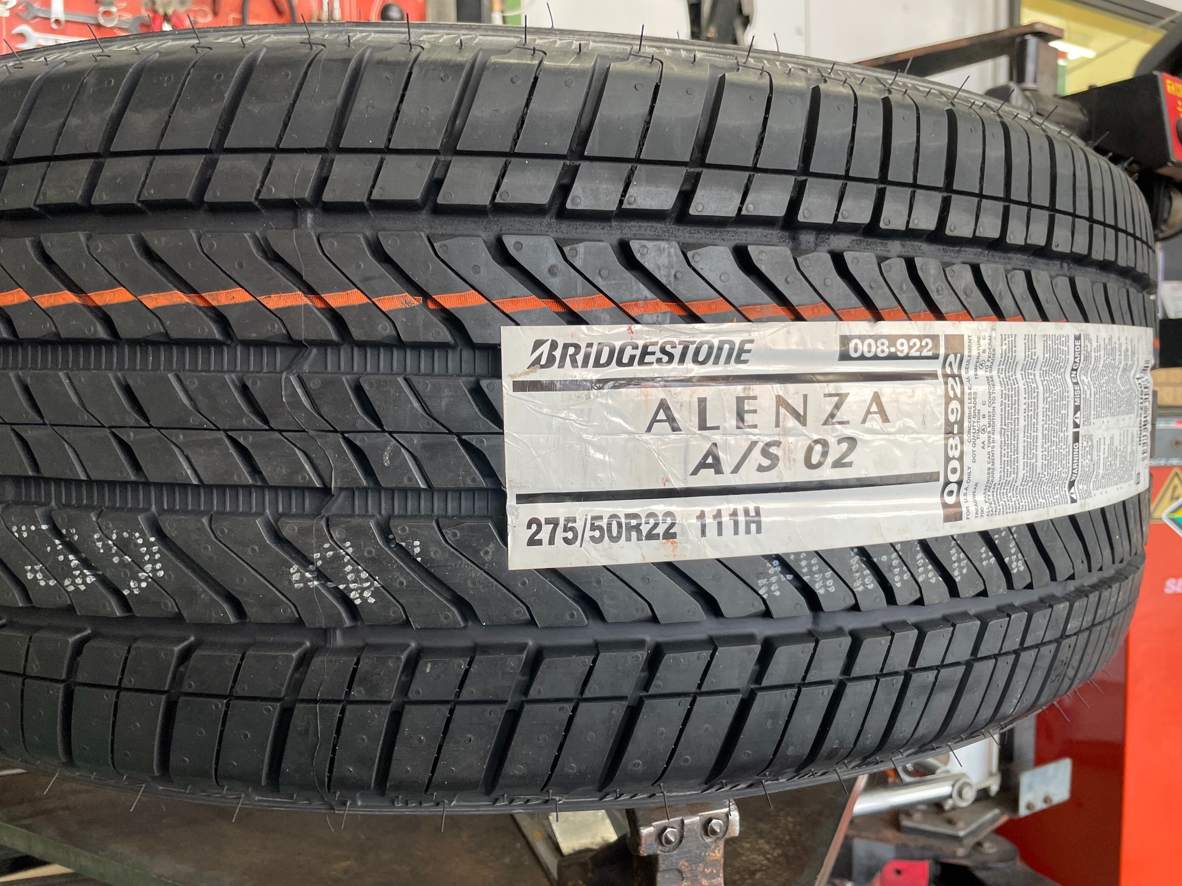 ”ALENZA A/S02”アメ車の新車に採用されているタイヤで日本でのALENZAよりもブロック1つ1つが大きく作られています。
