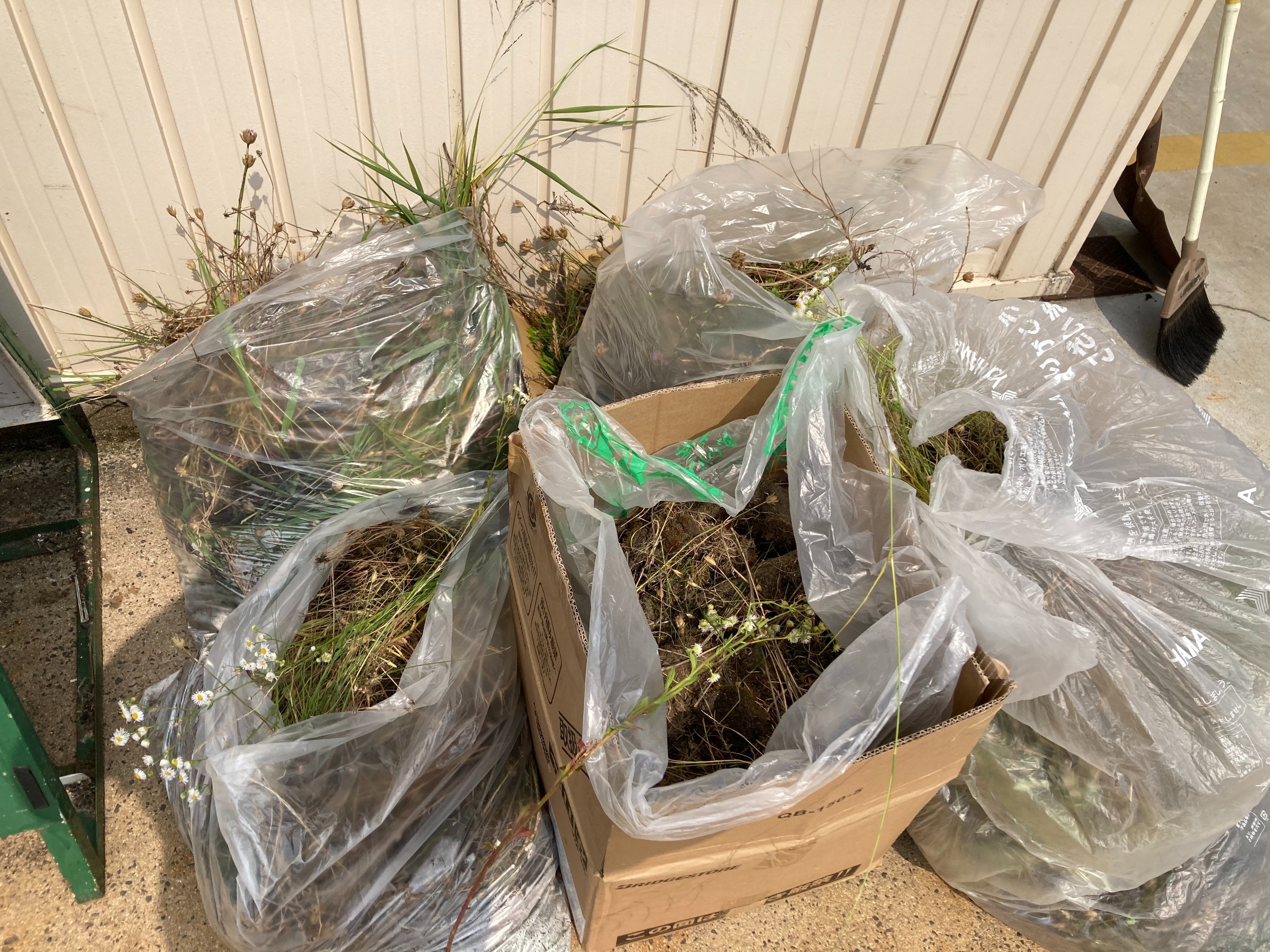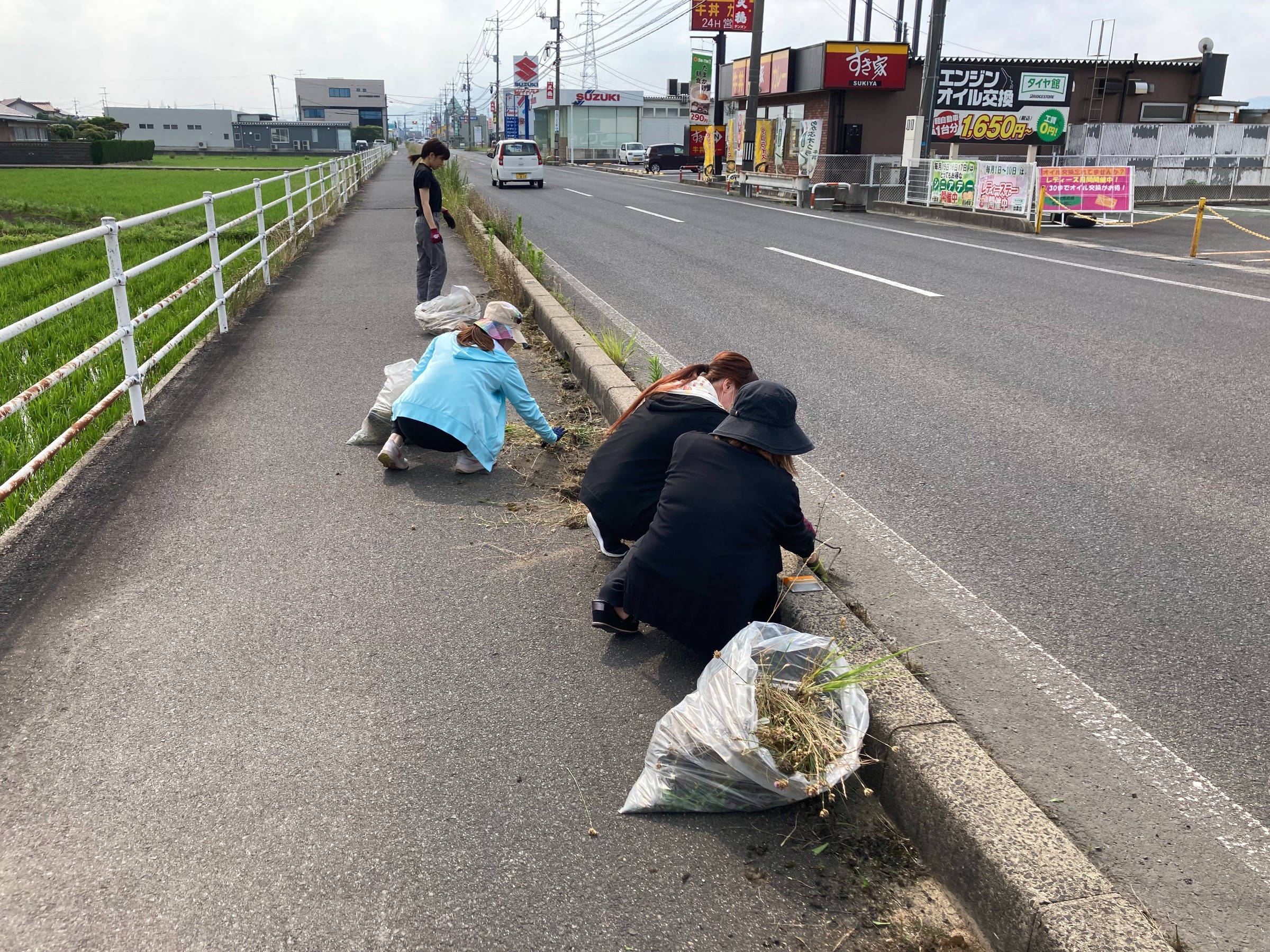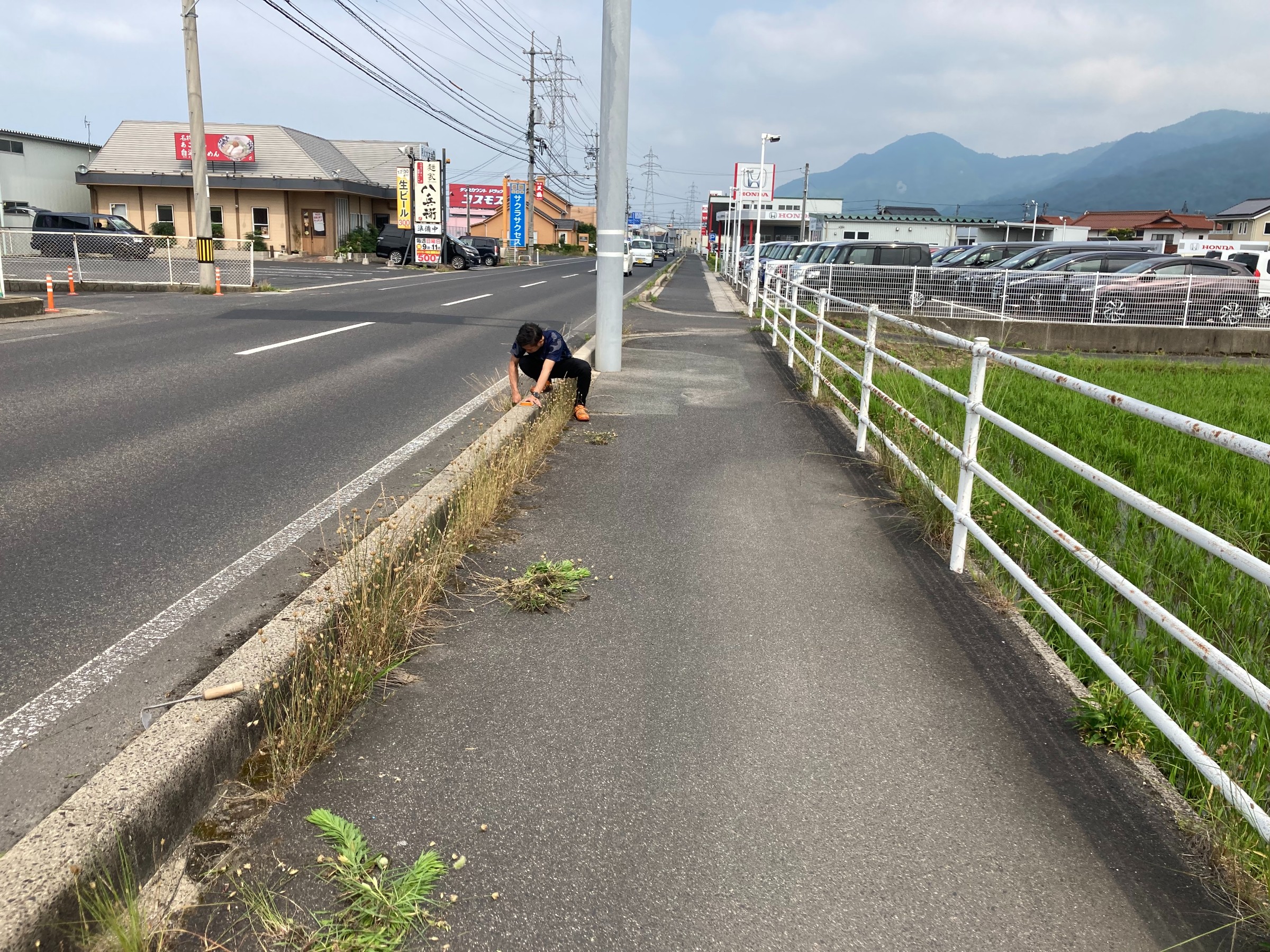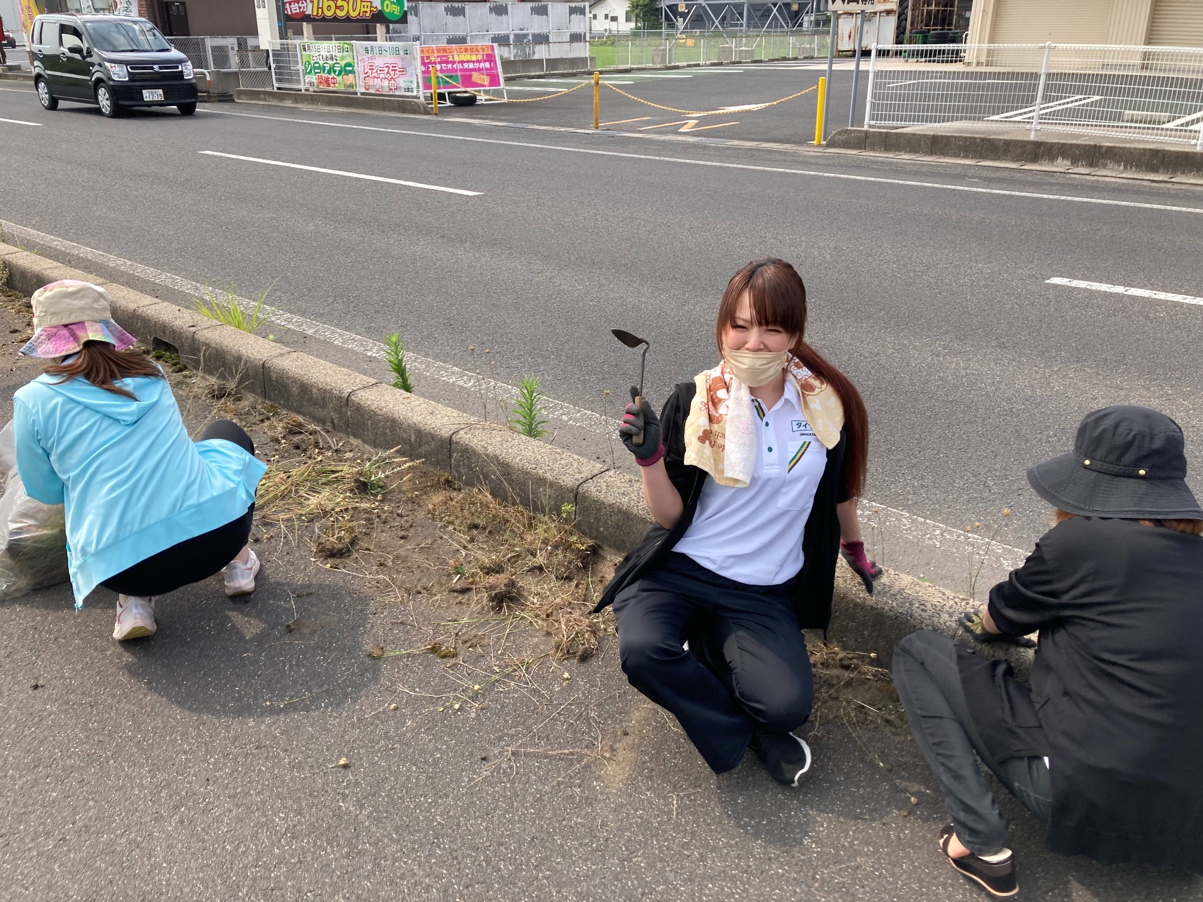 梅雨に入って店の周りの草が伸びてきたので、スタッフみんなで草取りをしました。