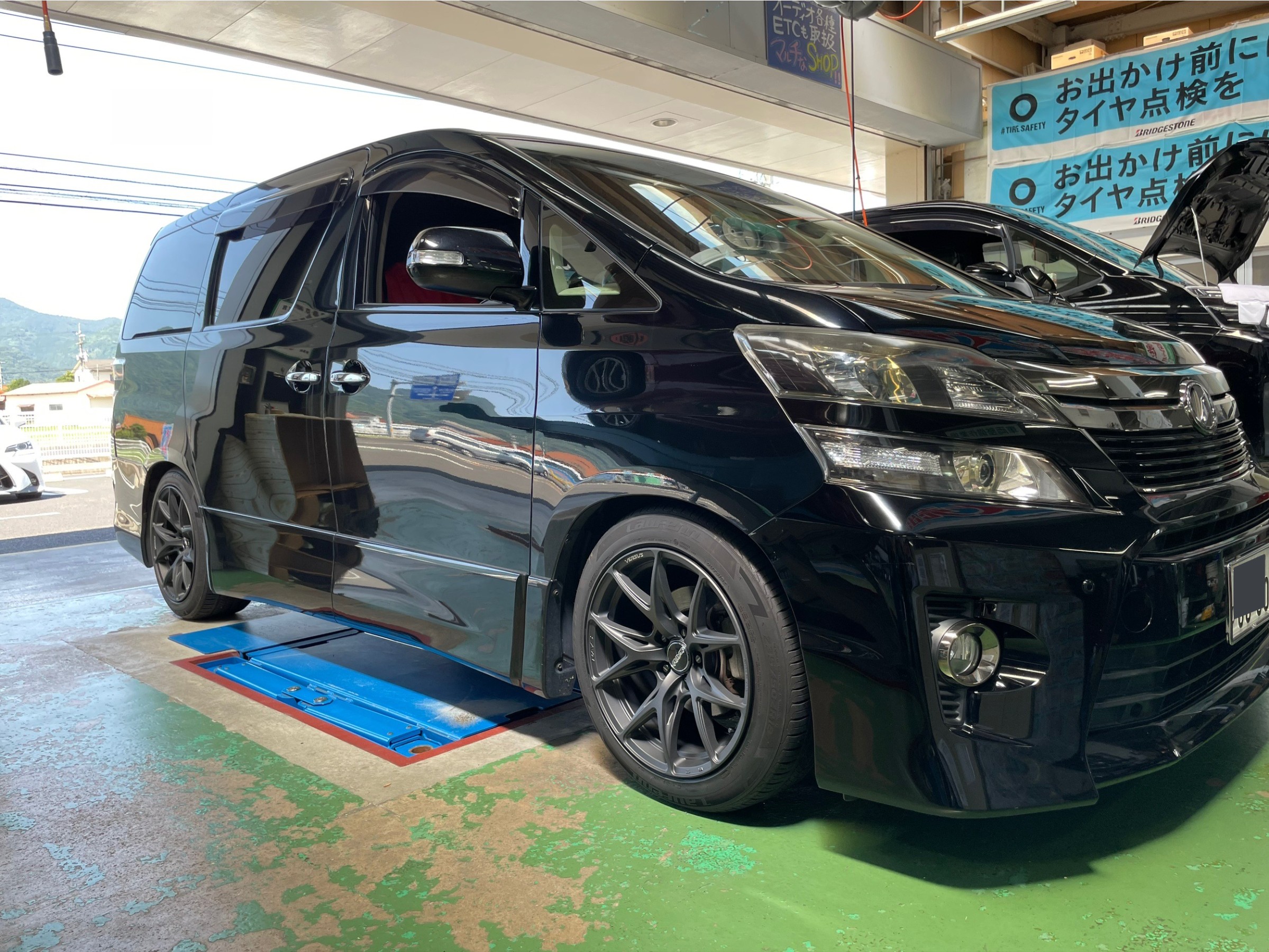 先日HKSの車高調でローダウンしたヴェルファイアのお客様のホイール交換です。