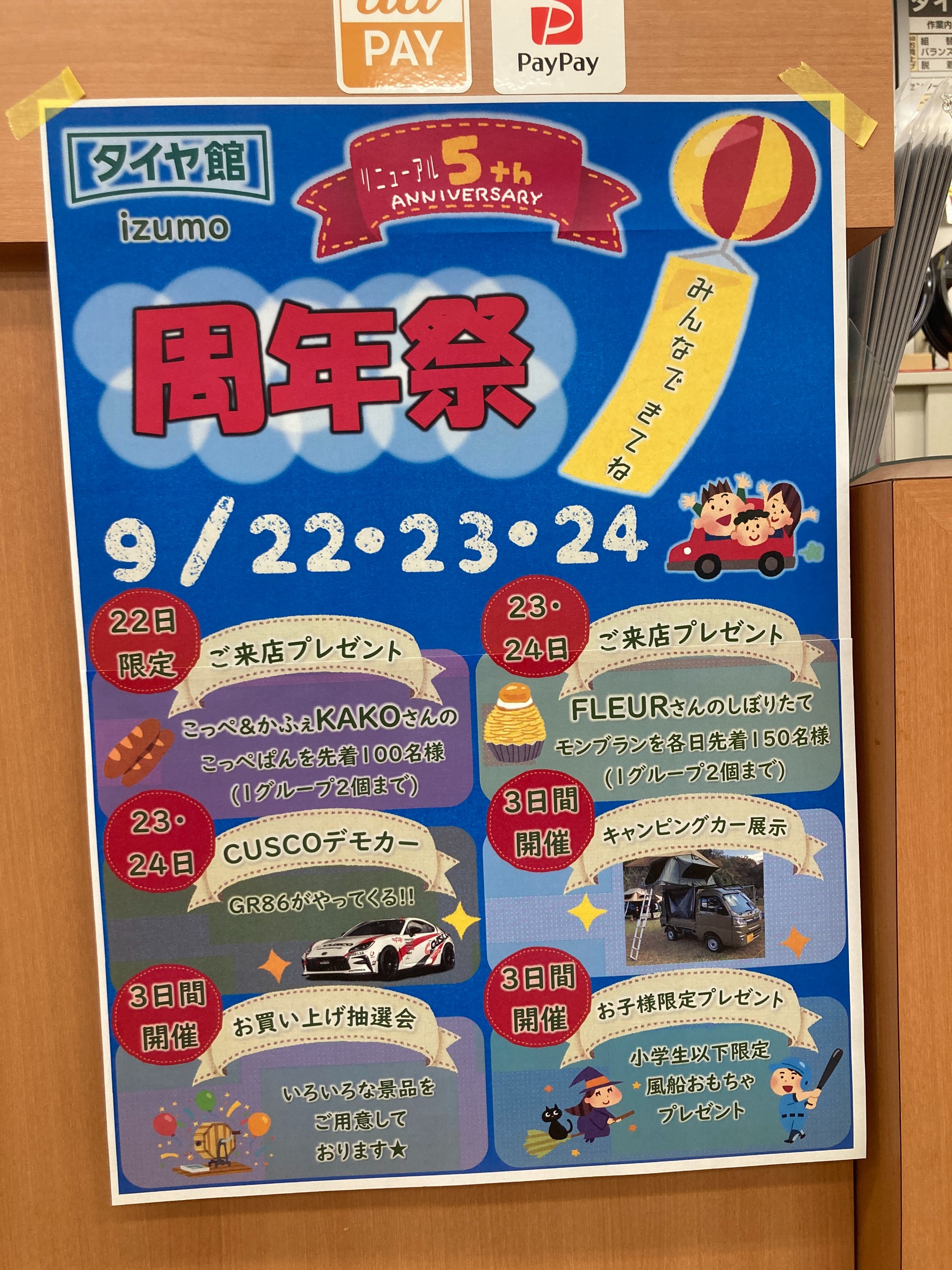 #周年祭 #タイヤ館 #タイヤ館出雲 #CUSCO #BBS #RAYS #Weds #WORK