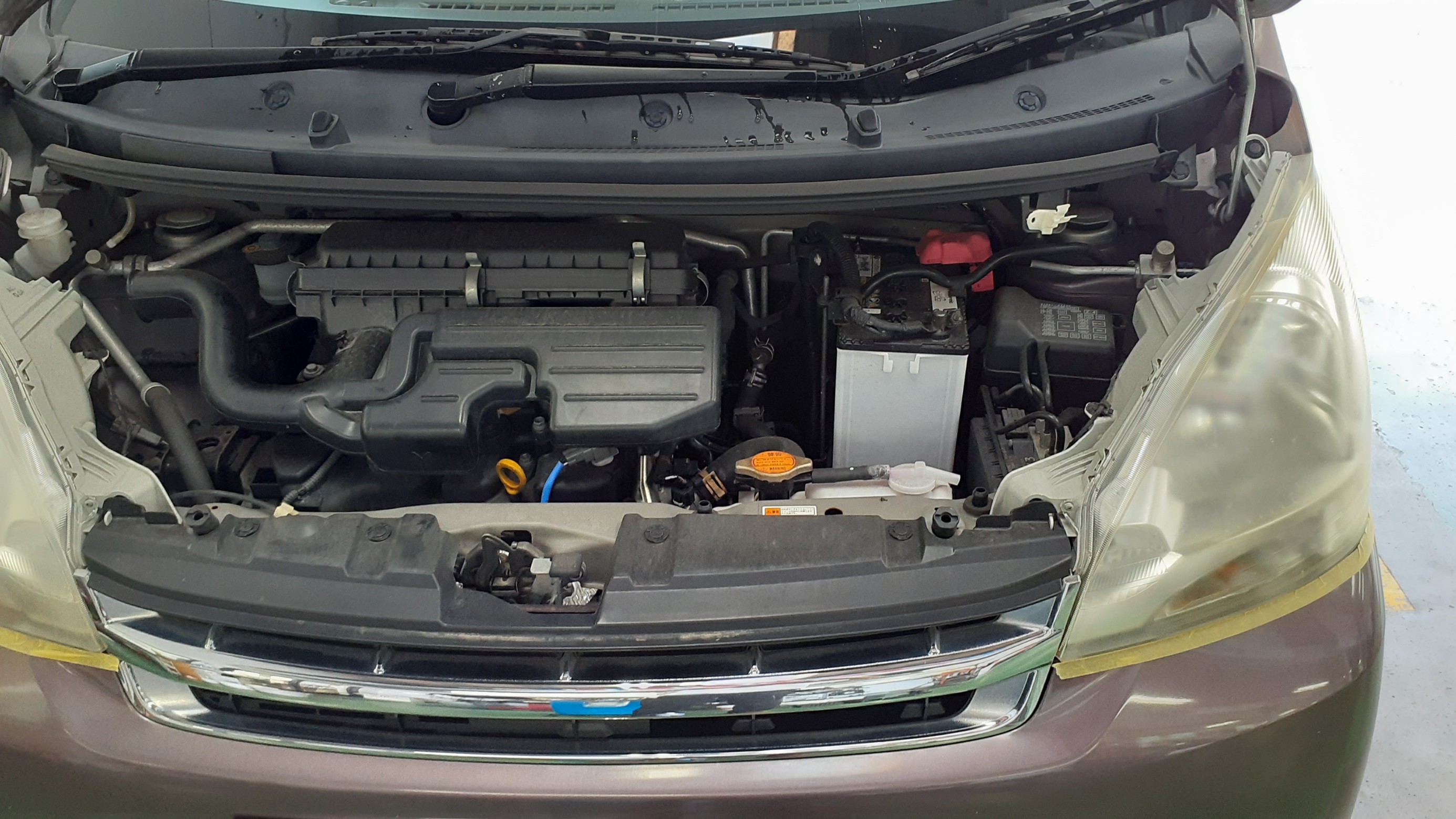 先日ムーヴにヘッドライトコーティングのエコノミーコースを施工しました。