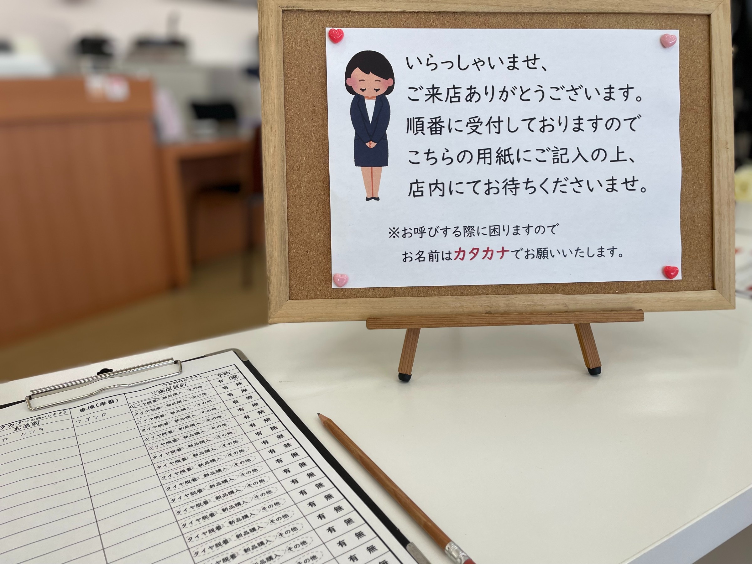 ご来店された際は店内へ入店後、受付表へ記入いただきお待ちください。