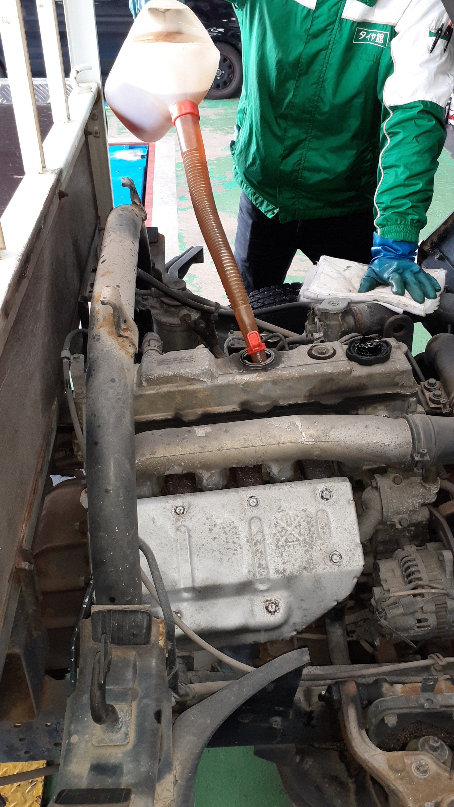 オイルは老いる!トラックのオイル交換もタイヤ館出雲にお任せ下さい!(一部車種は除きます)