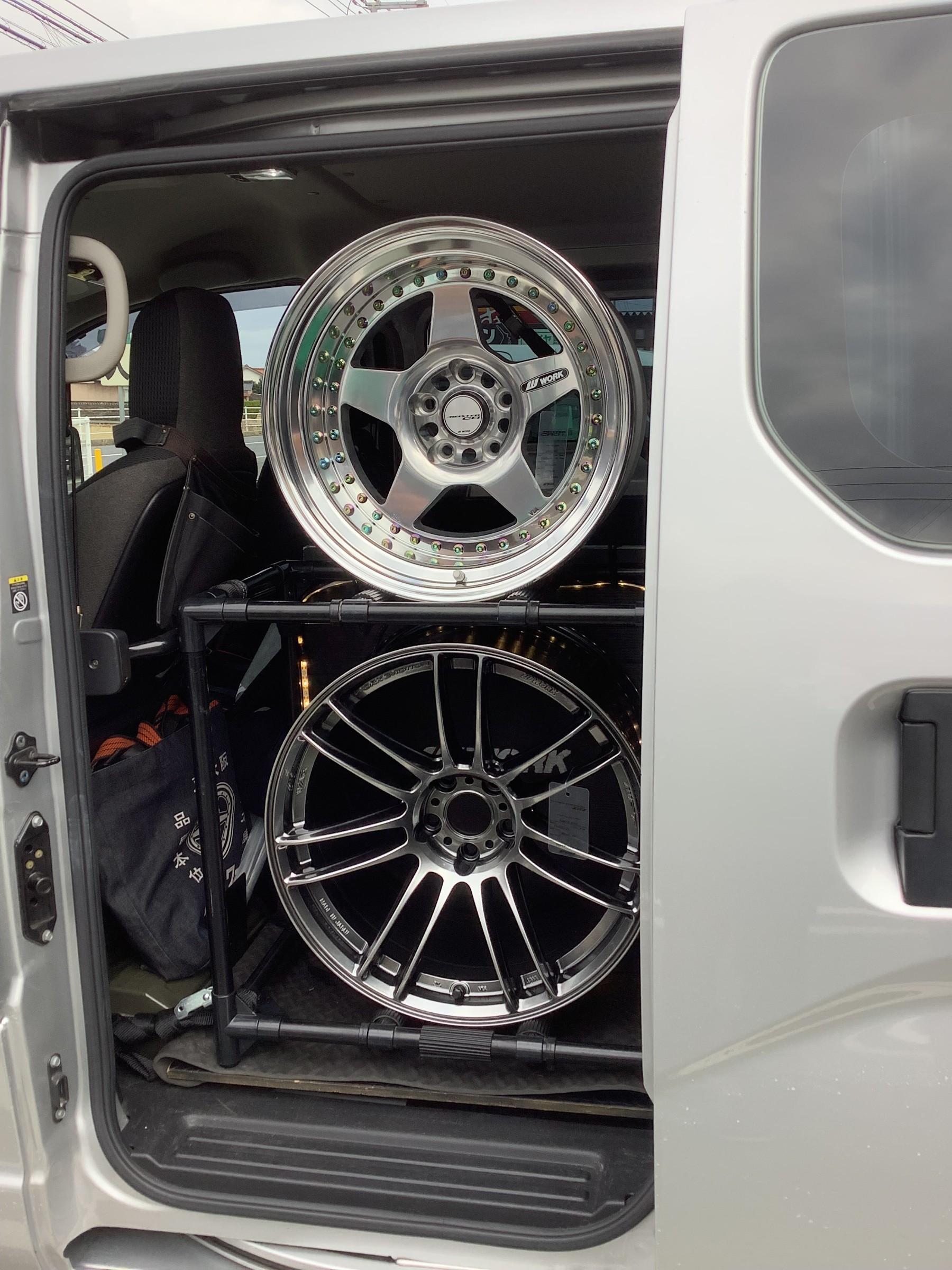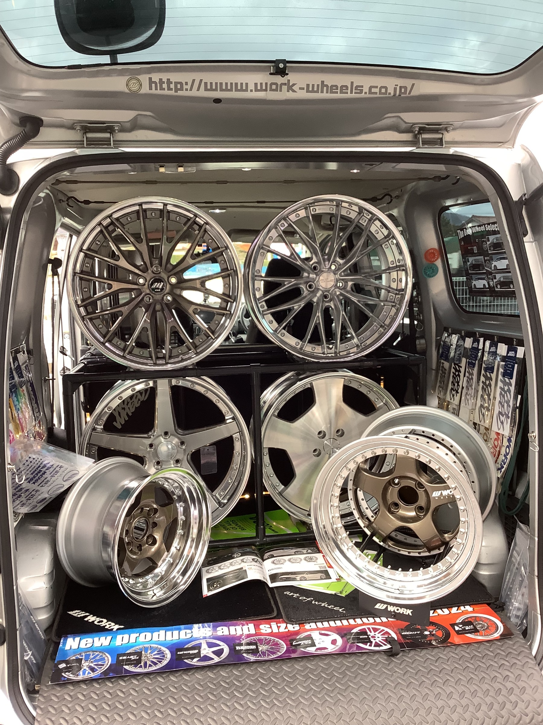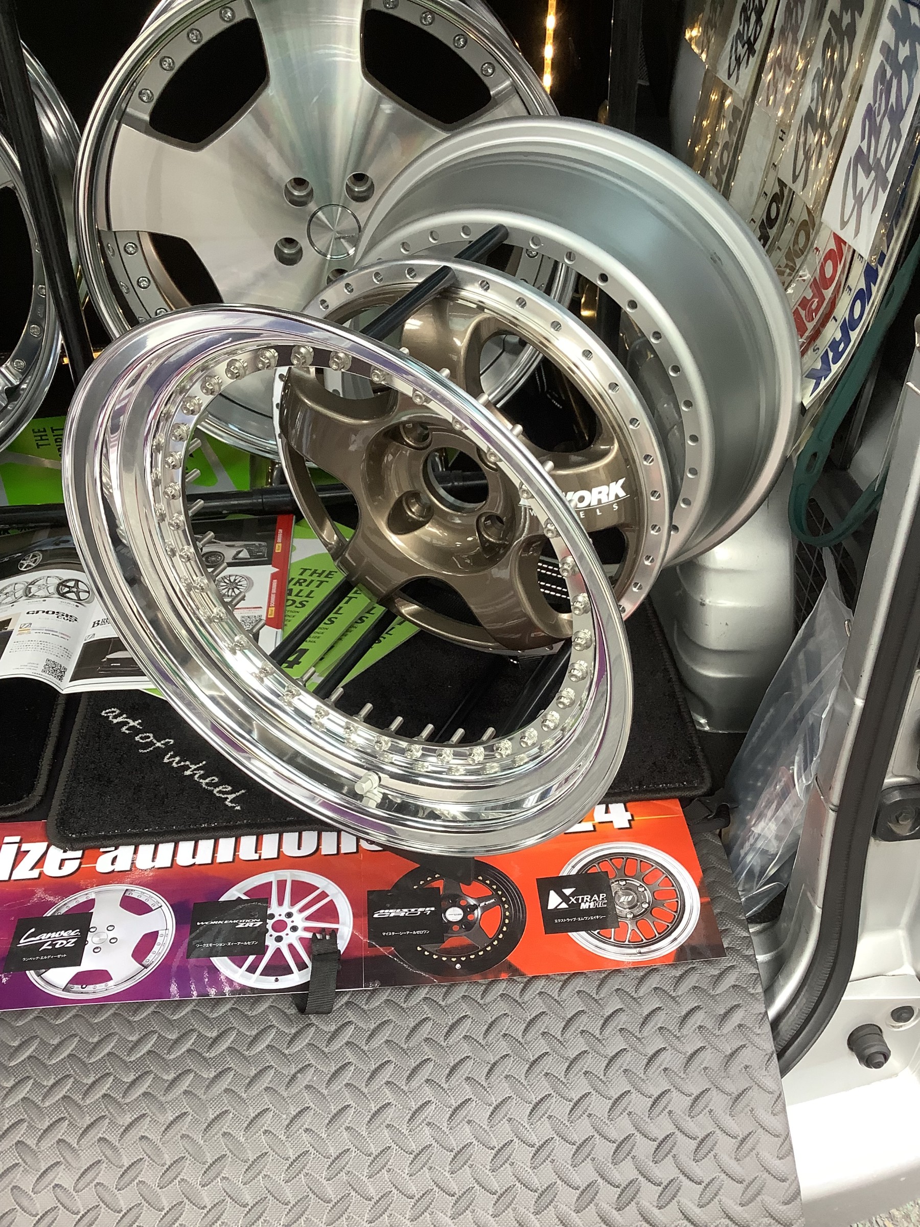 なんとクルマの中にホイールが展示してありました(((φ(◎ロ◎;)φ)))