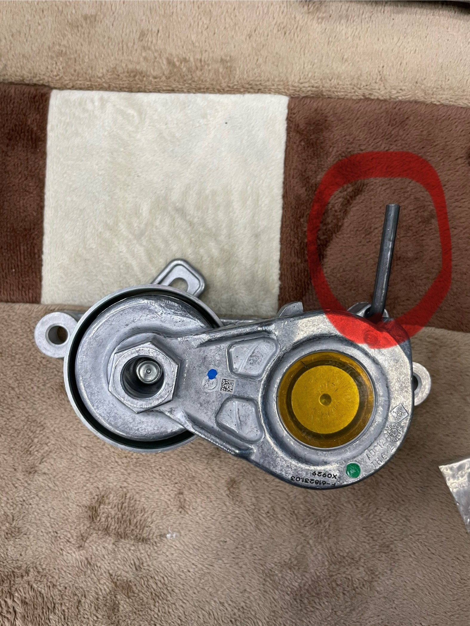 2個のテンショナーと取付ボルトを取り寄せして交換です。