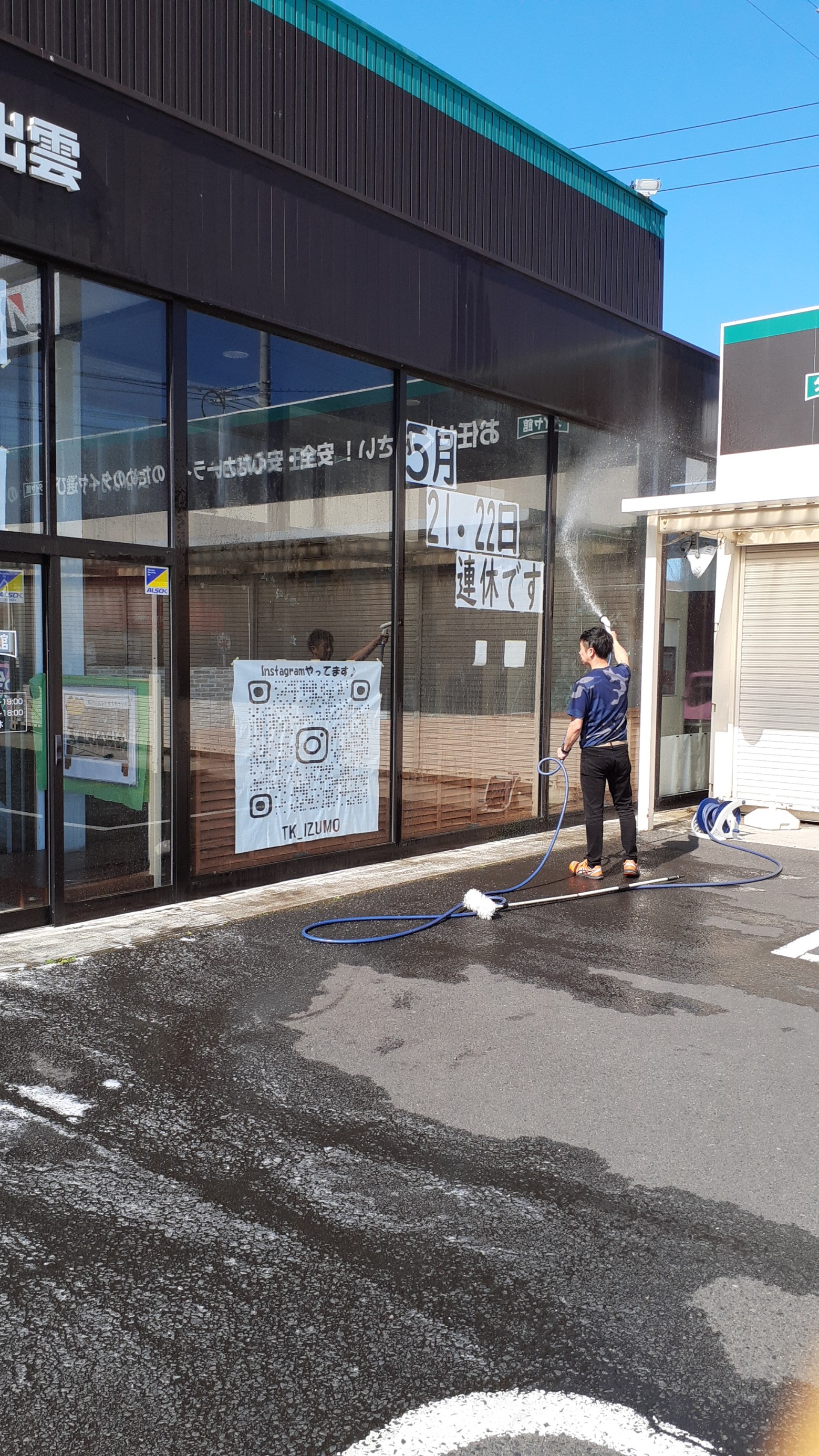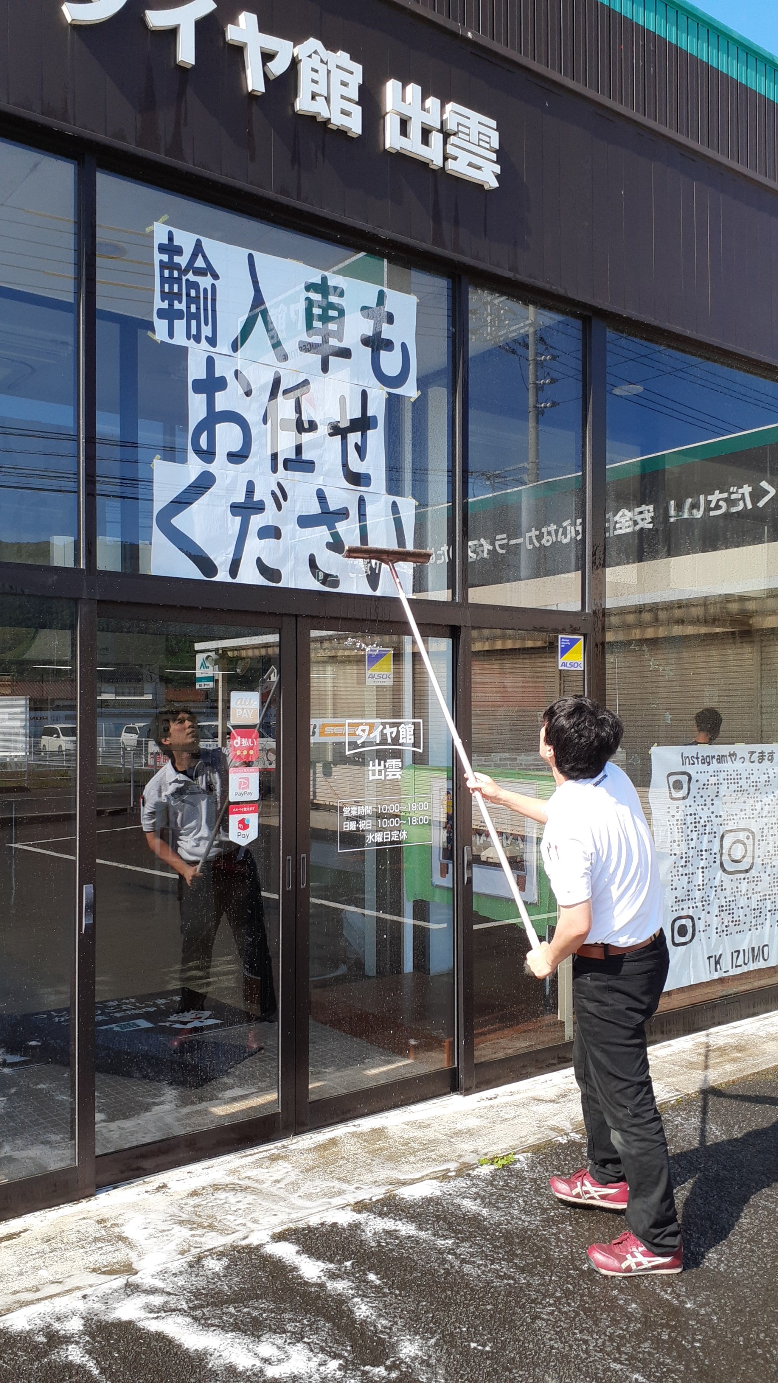 今回は店回りピカピカ大作戦と称して、朝から店舗の窓ガラス清掃をしました♪