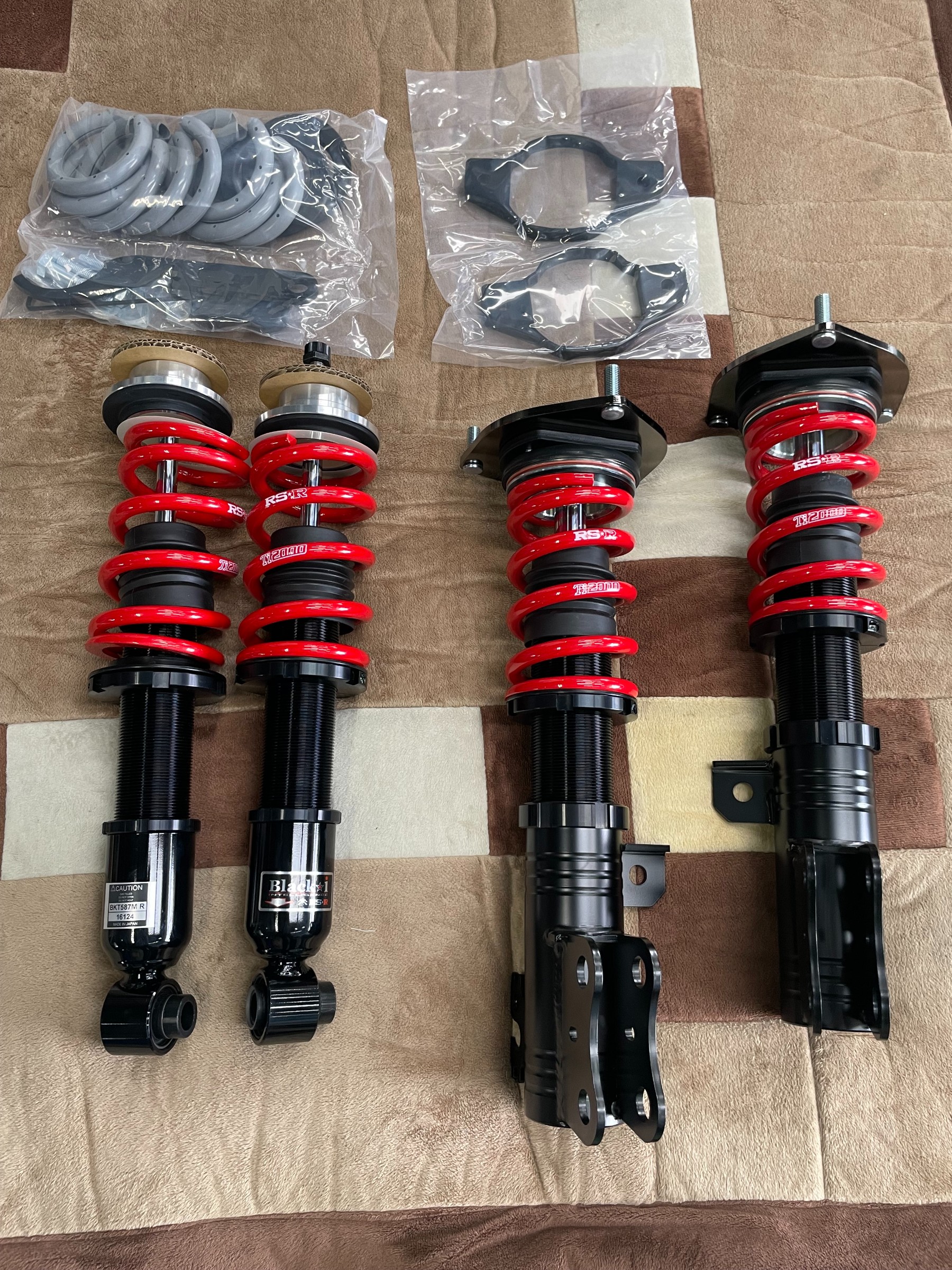 リアが今までと変わっていて、純正はショックとスプリングが別体式ですが、この車高調になると写真の様にフロントと同じ一体の形状になっています!(通称コイルオーバー化)