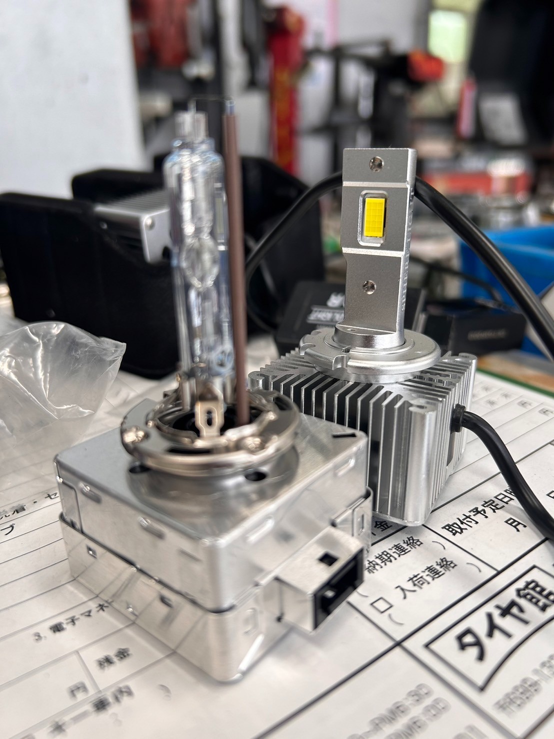 手前が純正HIDバルブ 奥がLEDバルブ