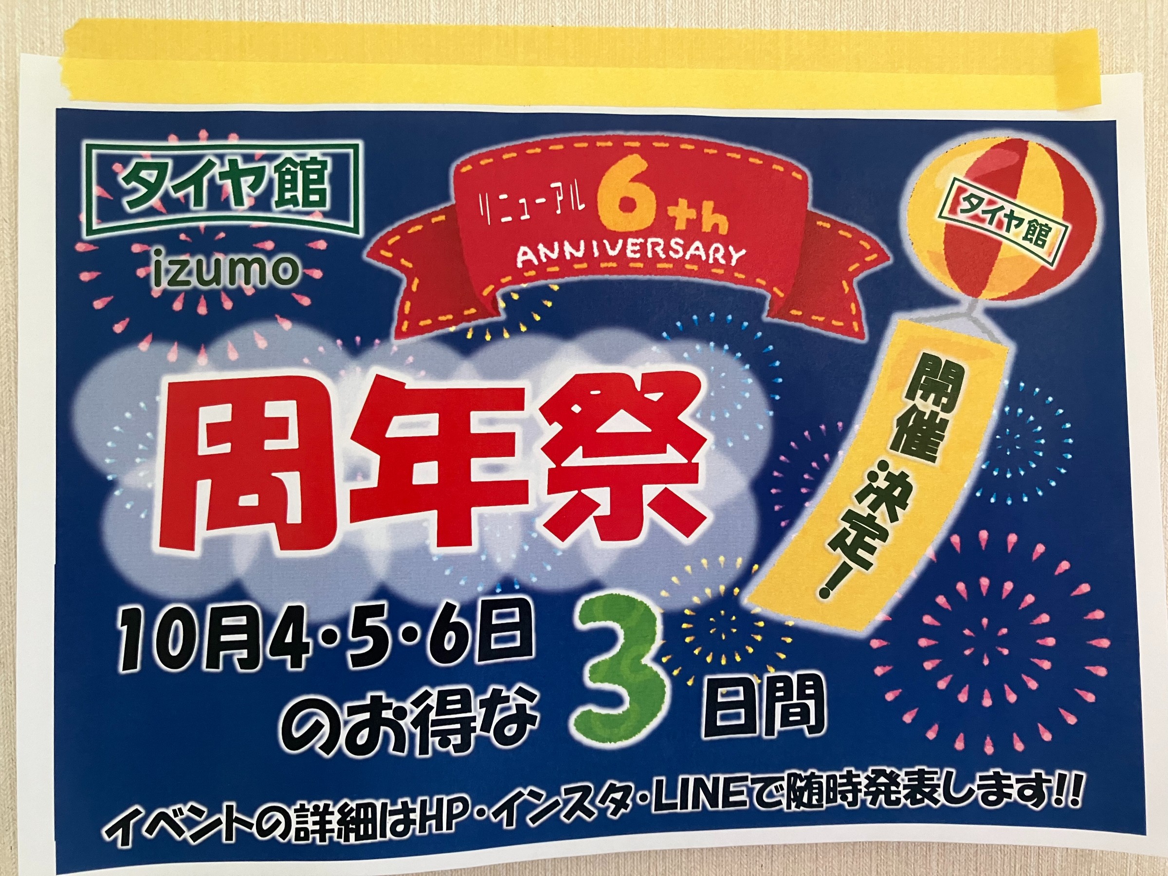 タイヤ館出雲では毎年恒例の周年祭を10月4・5・6日開催いたします!