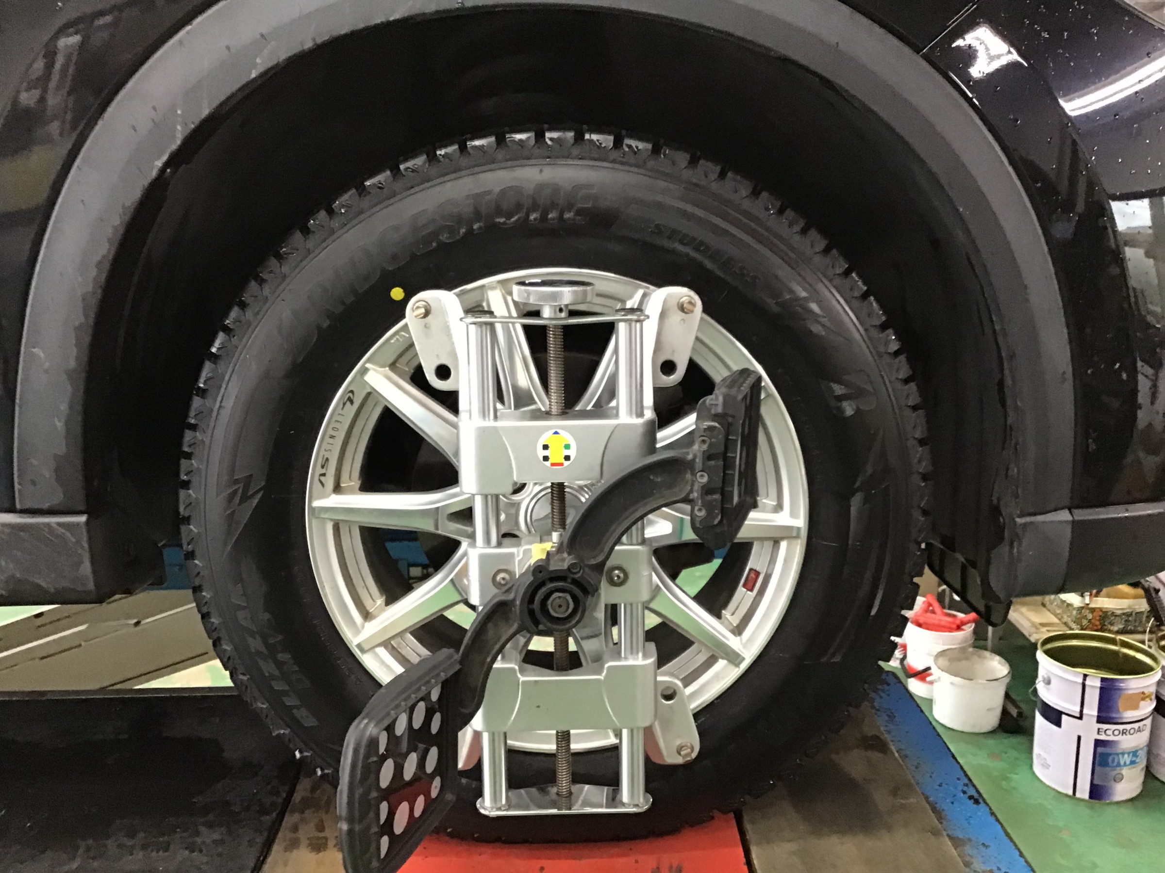 スタッドレスタイヤ交換をされたお客様で、タイヤが方べりしていたので、新品タイヤに交換してアライメント調整をしました!