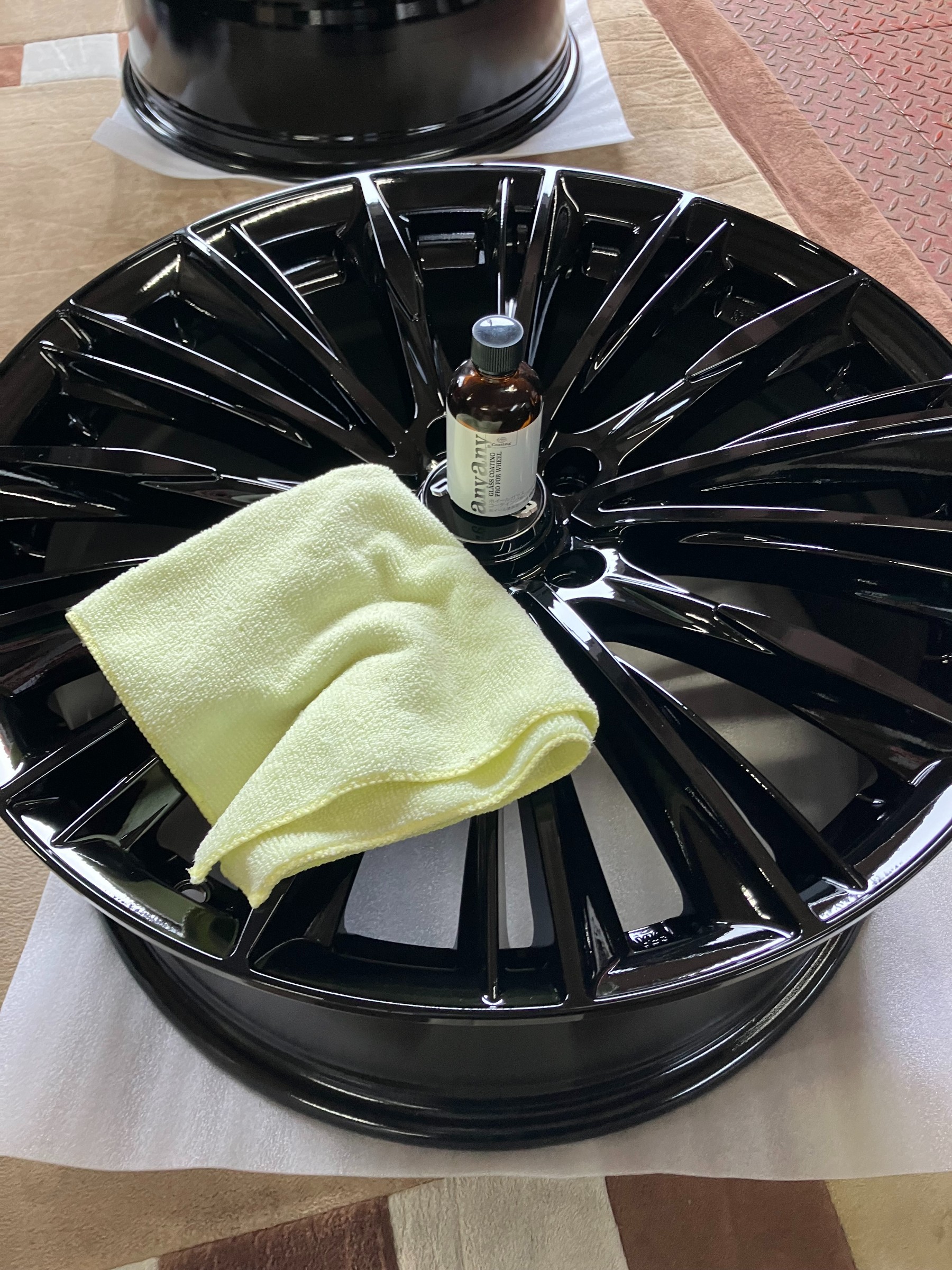 ご注文のホイールが入荷しましたので、ホイールガラスコーティングをして、タイヤに組付けていきます!