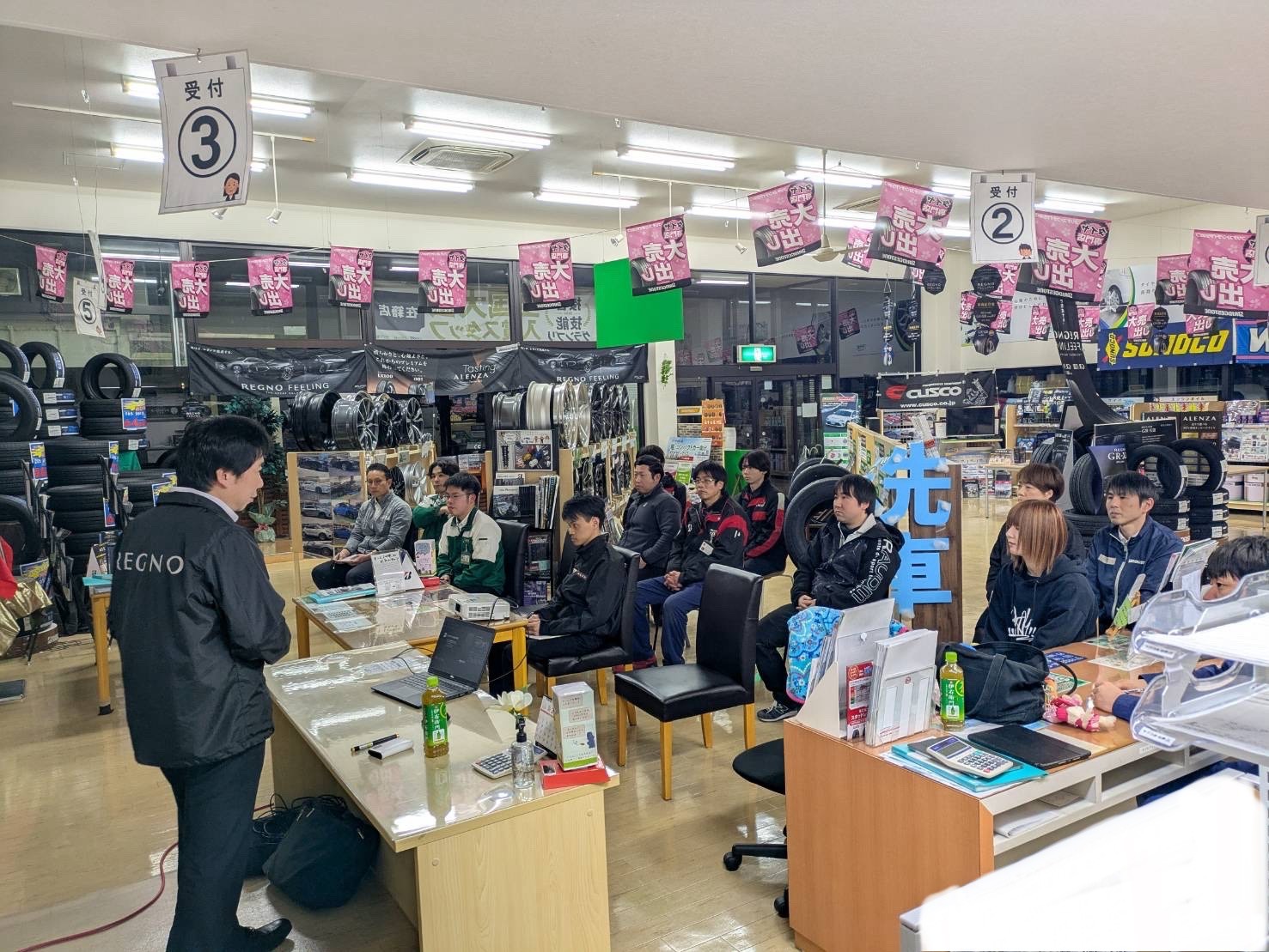 前商品のレグノGRVⅡからの進化した部分など、技術サービスさんならではのお話が聞けて、とてもいい勉強会になりました(^▽^)/