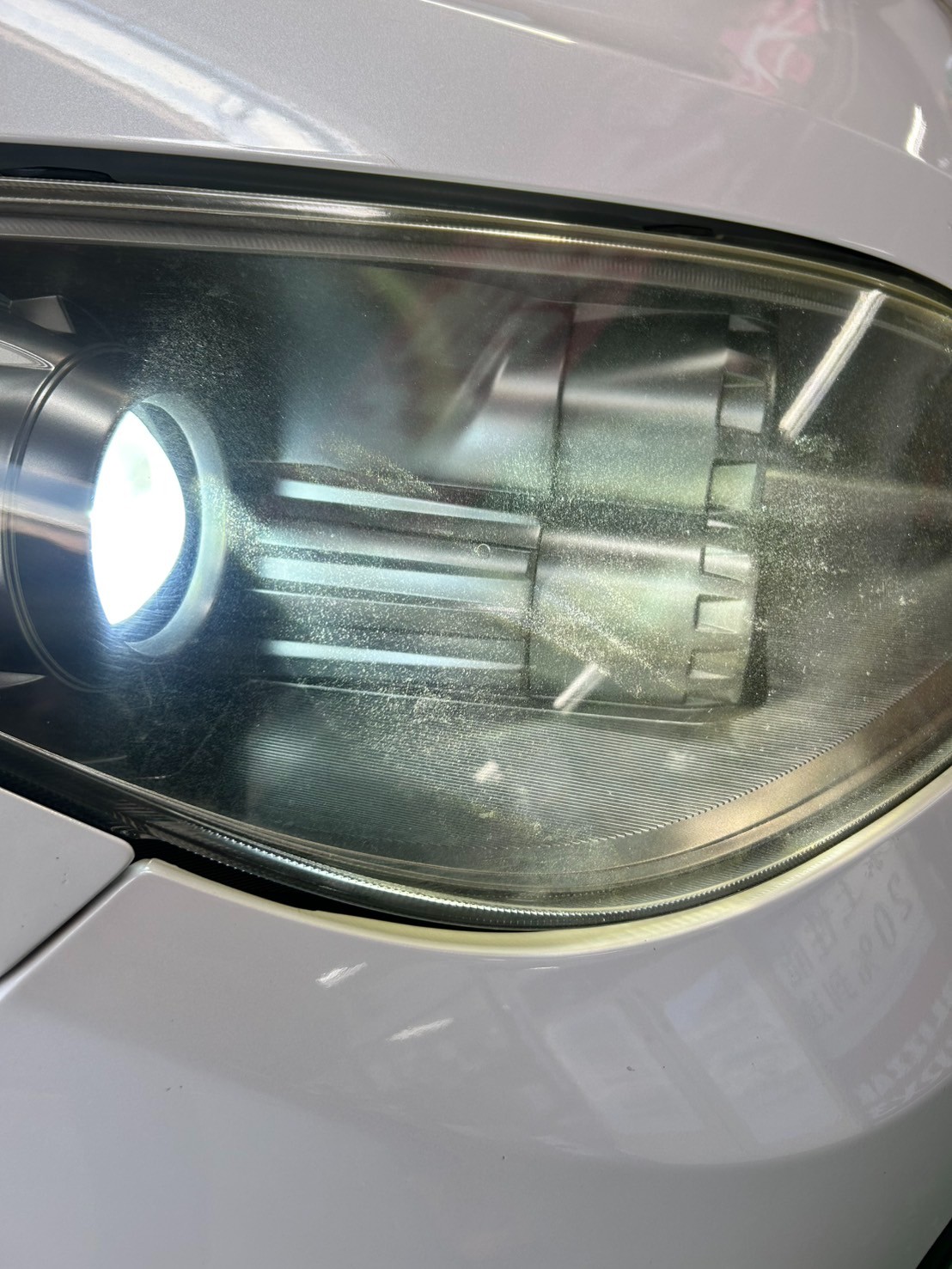若干黄ばみがあり、ライト付けるとくすみがわかりますね!