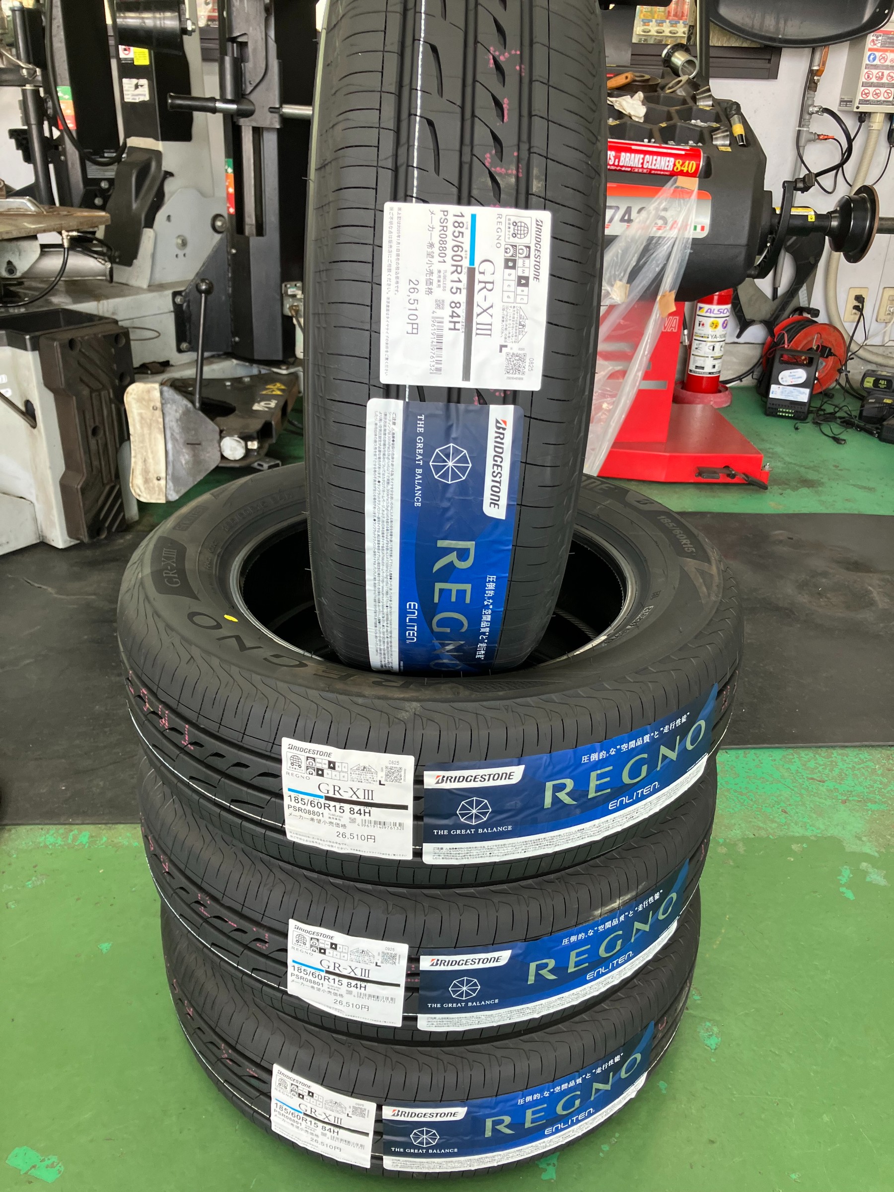 タイヤ交換で持って来られたタイヤがだいぶ摩耗していましたので、レグノGR-XⅢ 185/60R15に交換です!