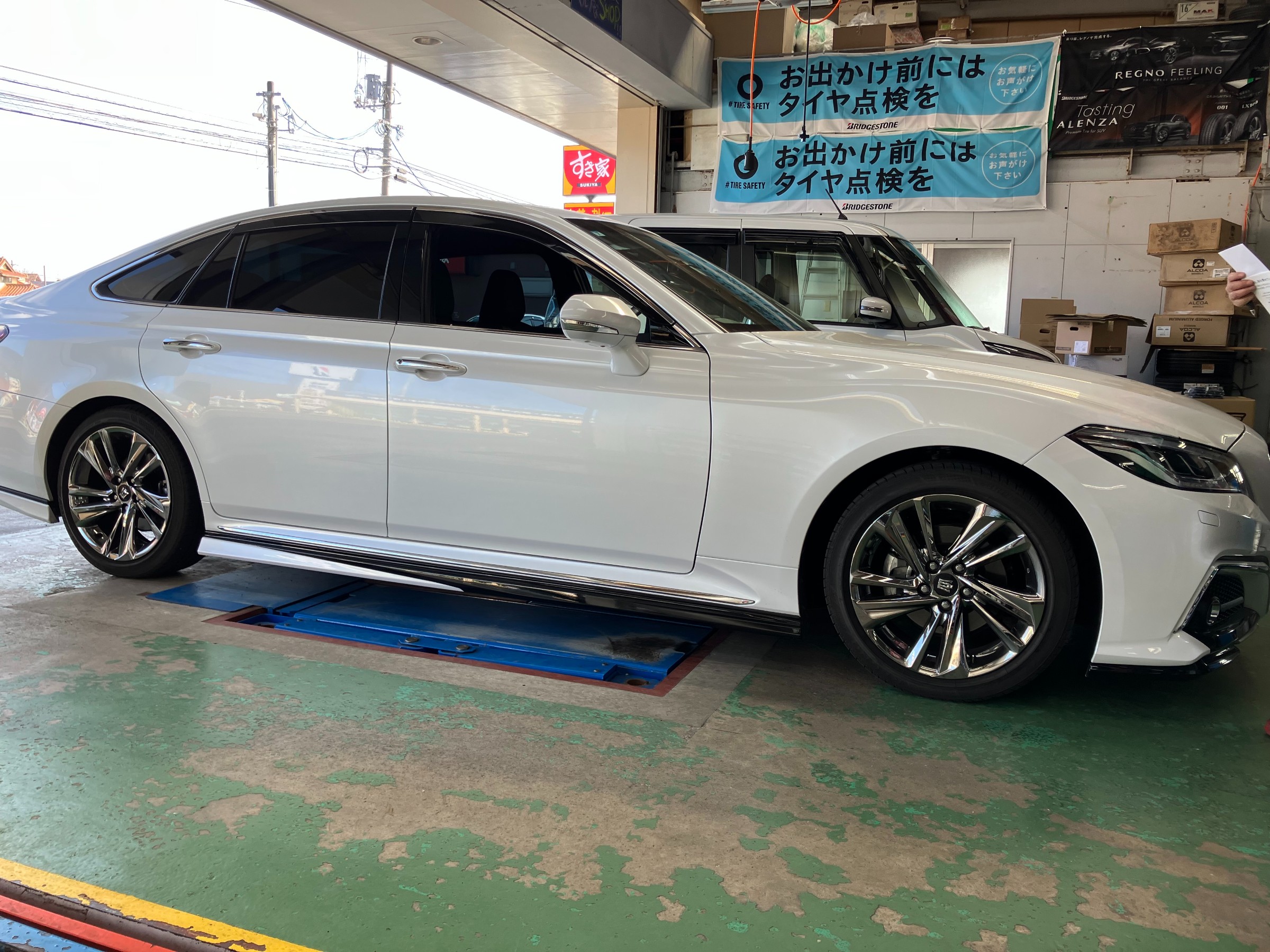 クラウン アスリートのお客様の待ちに待ったホイールが入荷しましたので、ホイールコーティングをして取付です(^▽^)/