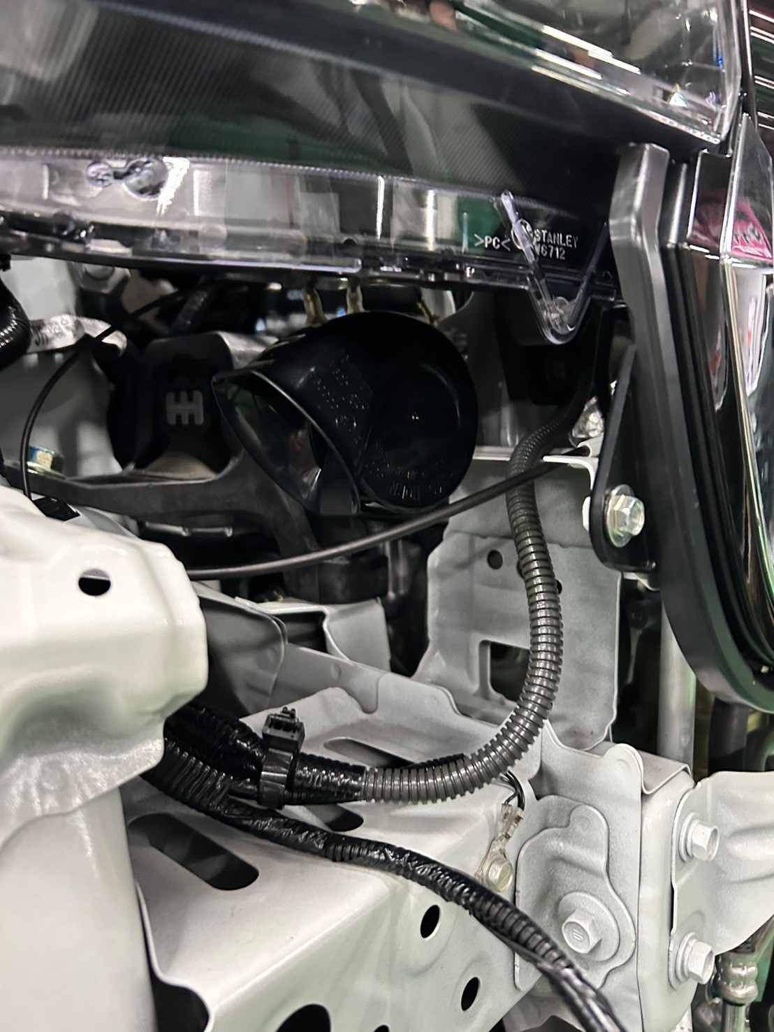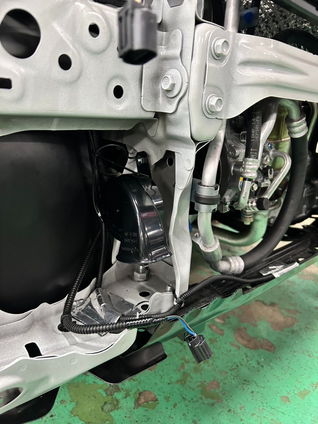 バンパー外して二つのホーンをインストール(^^♪