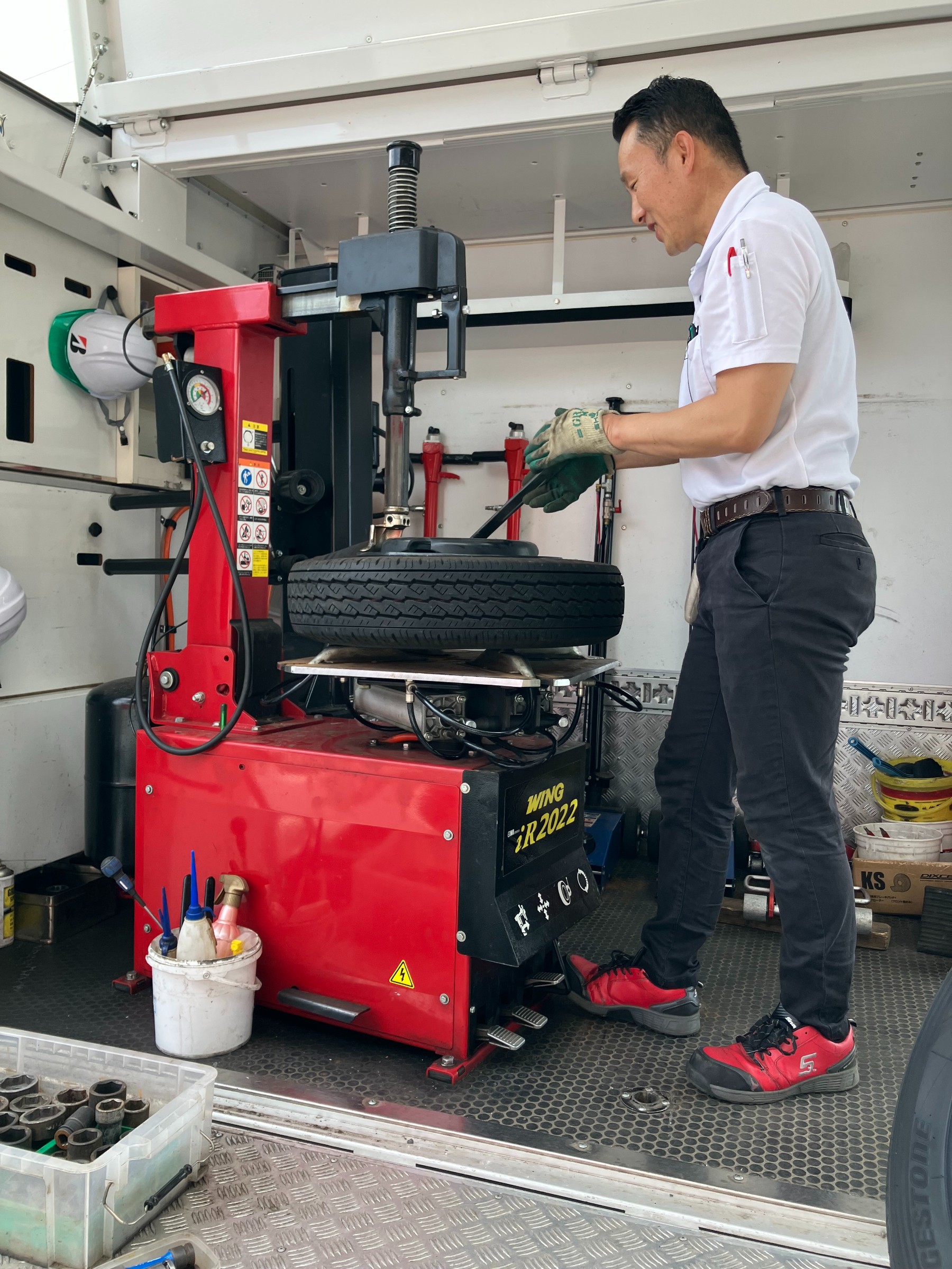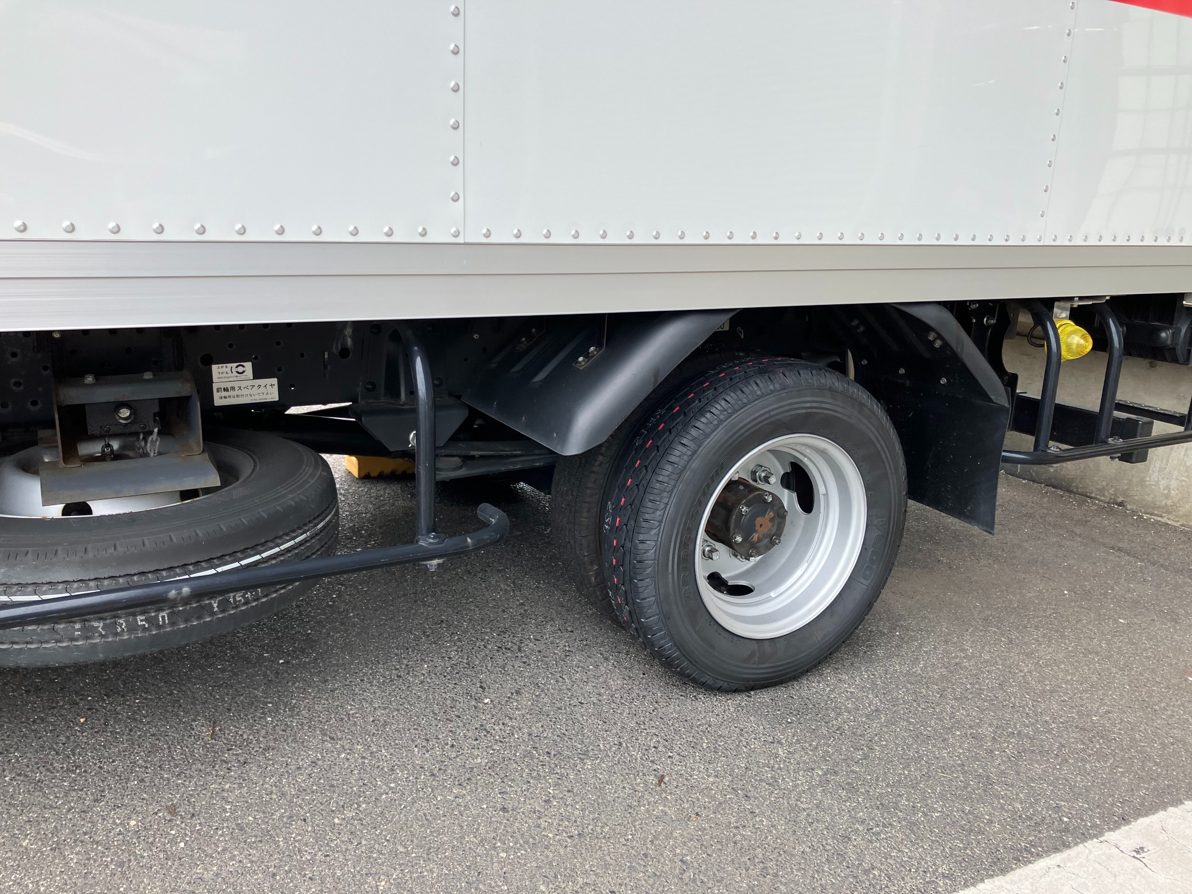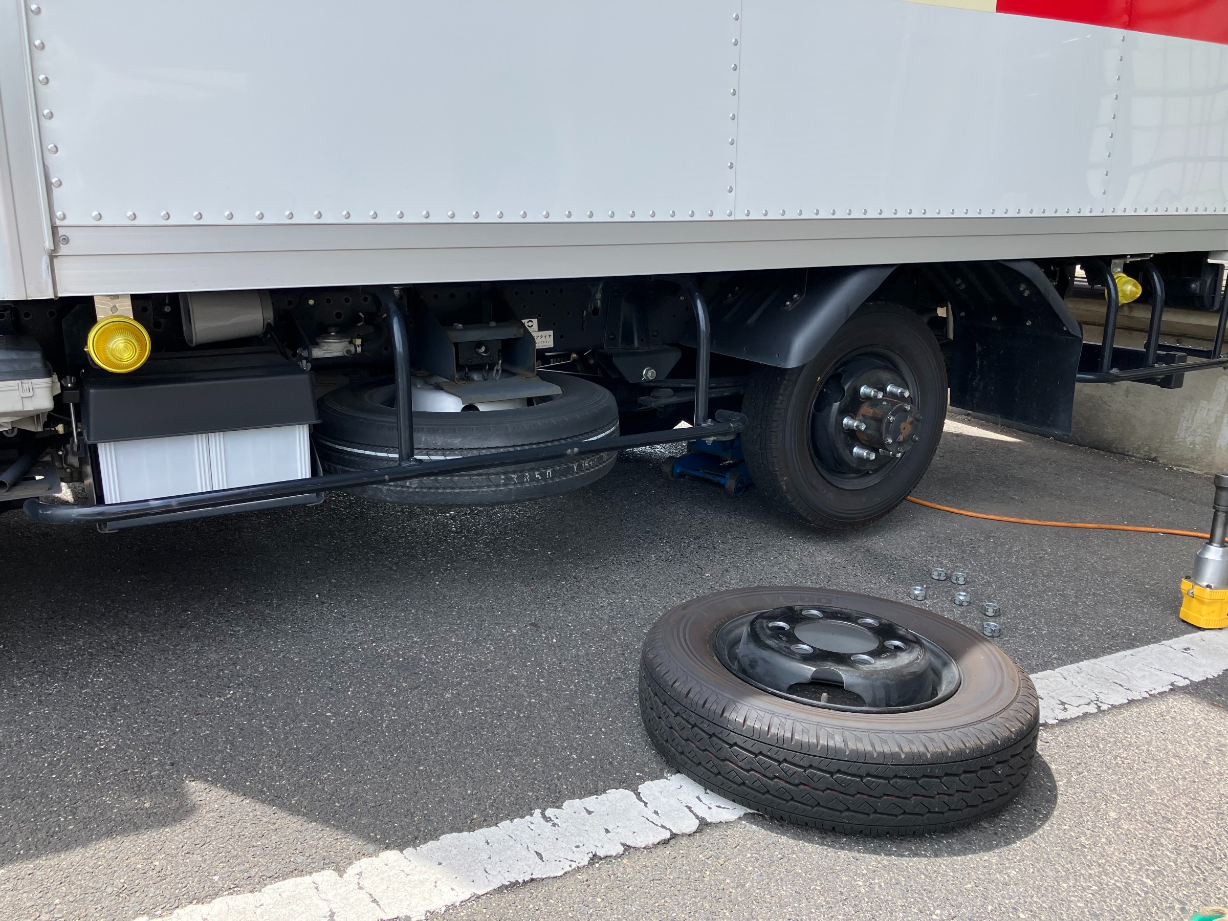 先日、近くの事業所様のトラックがパンクしたとの事で、当店自慢のシステムカーで出張作業に行って来ました!