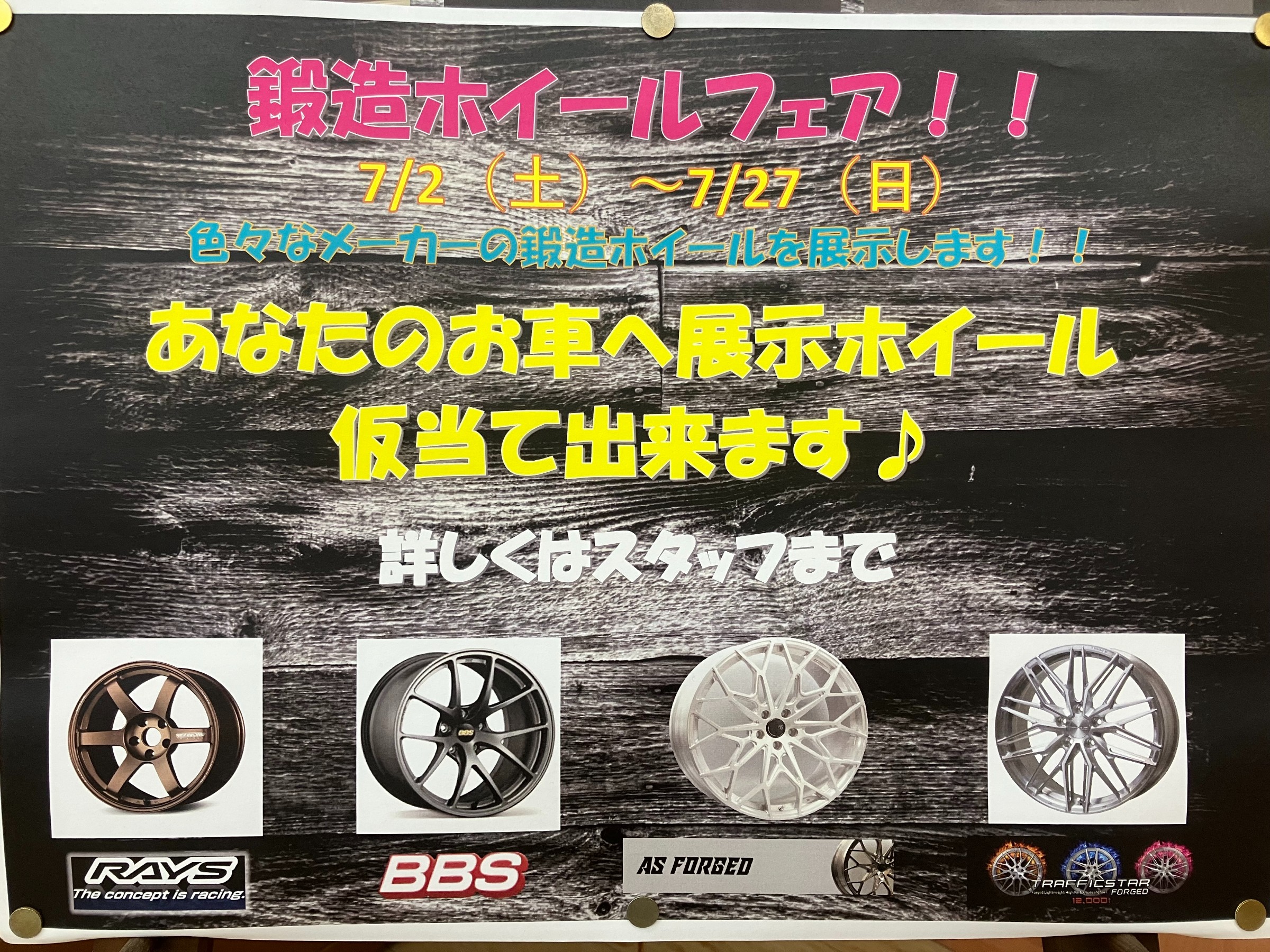 サマーフェア期間中は色々なメーカーの鍛造ホイールを展示します!