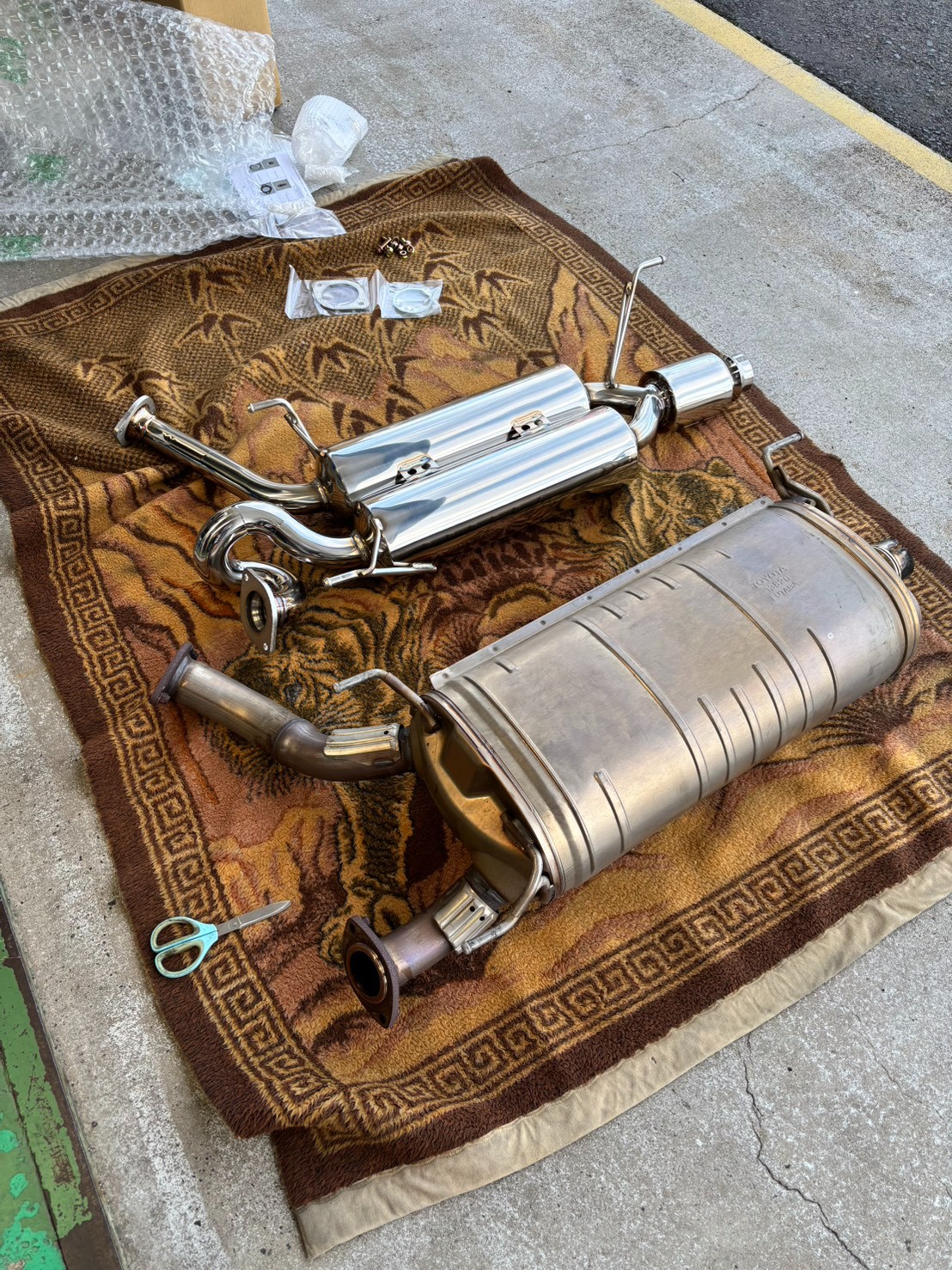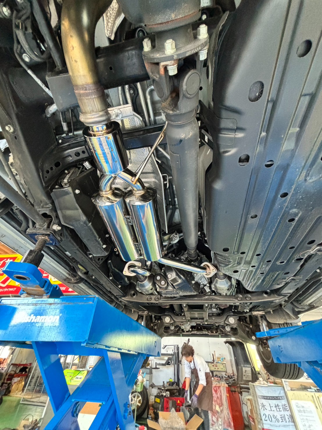 純正のモデリスタマフラーを生かすためセンターマフラーのみの交換です♪