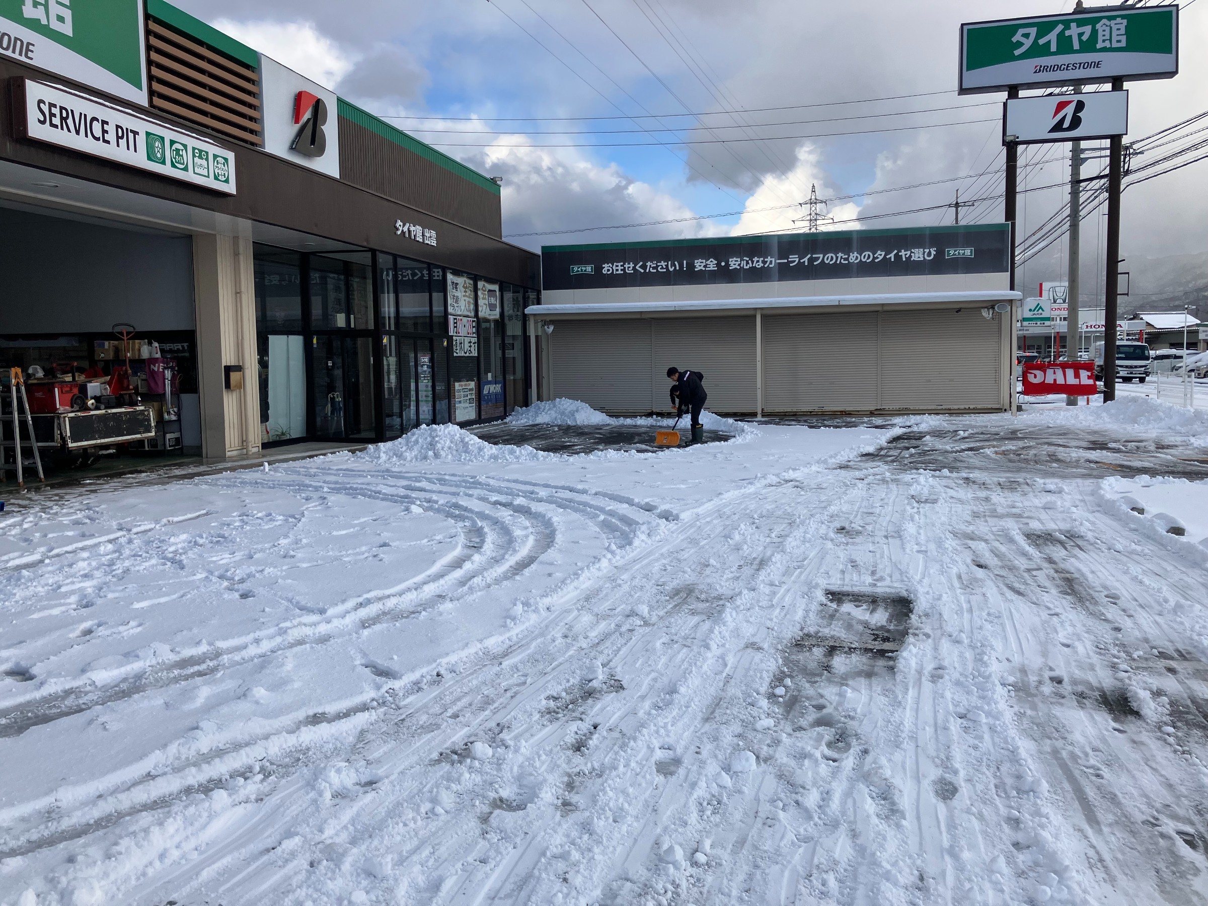 当店の駐車場もかなり積もりました^^;