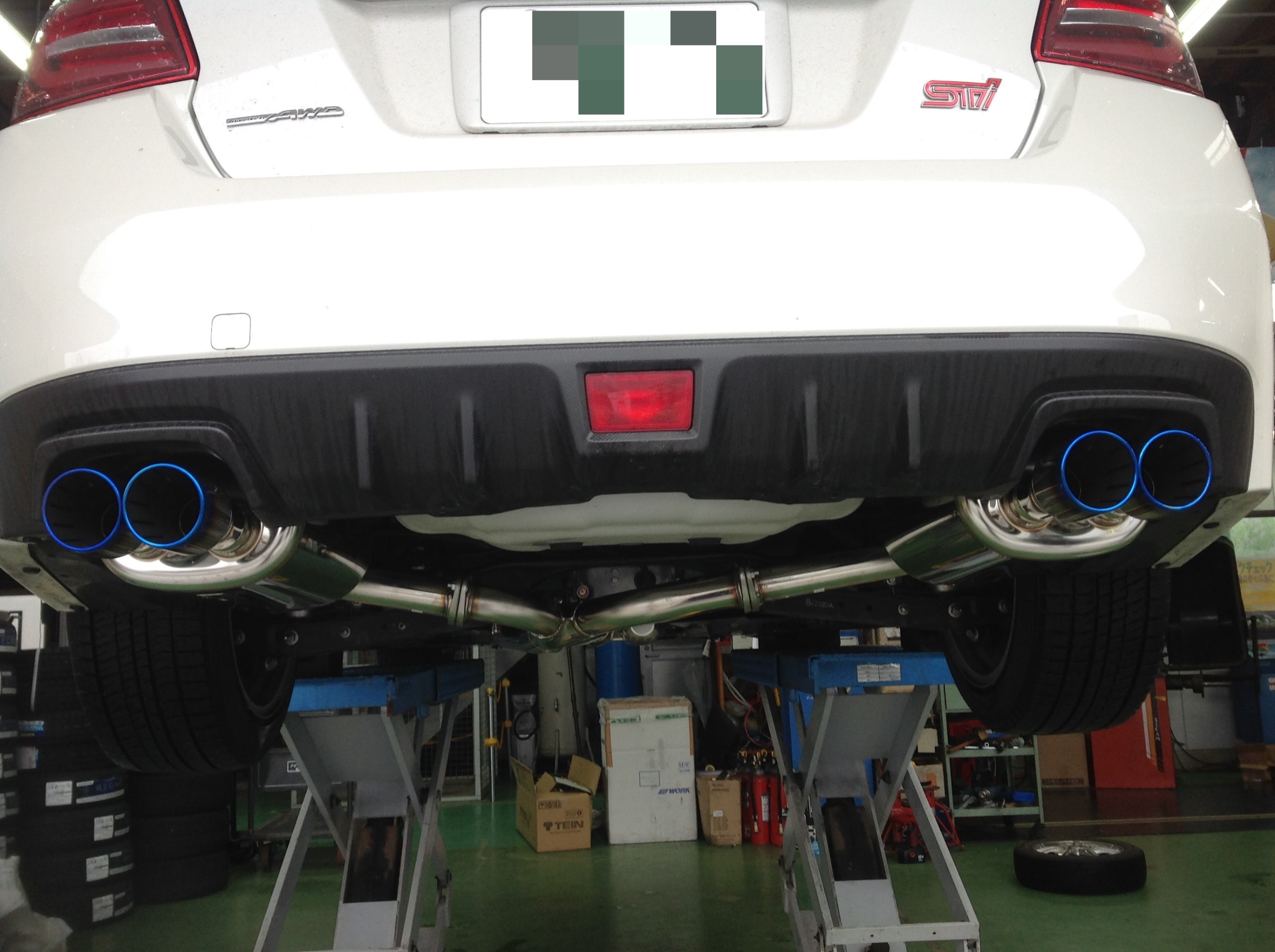 WRX STIマフラー交換 ポスト 2019年2月14日 WRX STIのマフラー交換をご依頼いただきました! 純正からHKSのスーパーターボマフラーに交換です。 これは中間パイプからの交換になり、排気効率などの性能もアップします⤴⤴ テール部分も元々4本出しですが、ブルーのチタンテールになり迫力あるリアビューとなりました! もちろん車検対応品ですので安心してお乗りいただけます♪ ありがとうございました(*^^*) 担当:大野