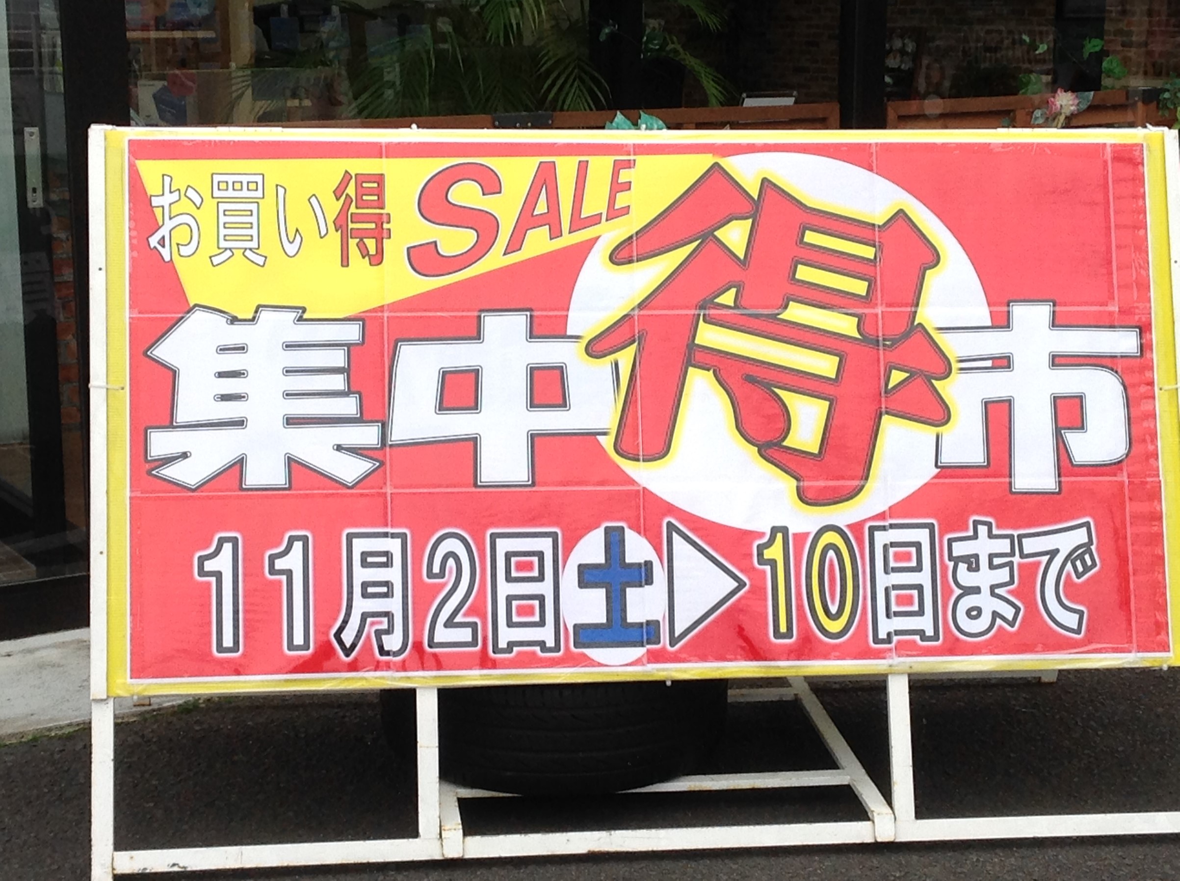 冬の集中得市 ポスト 2019年11月3日 当店では11月2日~10日まで集中得市を開催しております。 冬タイヤ・夏タイヤへの交換をお考えのお客様は是非当店へご来店ください。 冬タイヤの無料点検もしておりますのでご来店お待ちしております。 冬支度はお早めに(*^^*) 担当:松田
