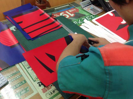 デザイン〜印刷〜カット〜ラミネート加工〜つなぎ合わせ、