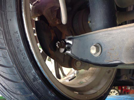 まずはリアキャンバー、極力起こすものの流石にこの車高なので
