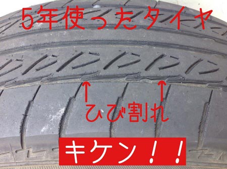 3〜5年(又はそれ以上)使ったタイヤは注意・点検が必要です。