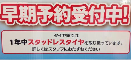 早くもスタッドレスタイヤ予約受付開始です。