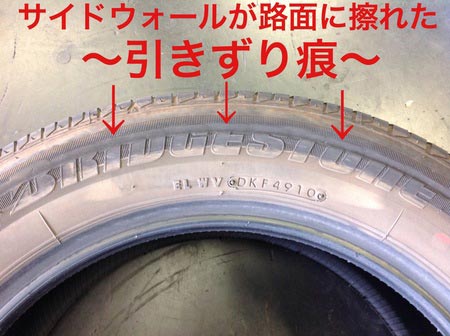 (ブリヂストンのロゴが帯状に黒く擦れているの、わかります?)