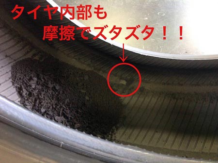 ←内部も摩擦で削れてこのようにゴムカスが大量に!!