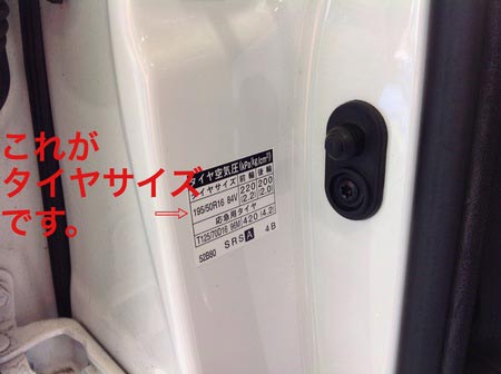 指定空気圧と共にタイヤサイズが書かれていますが、