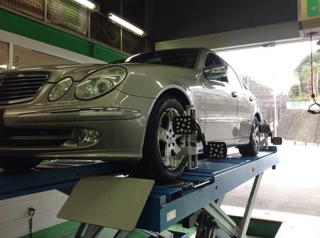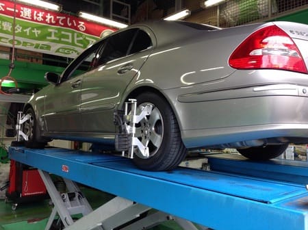 W211ベンツ、純正補修部品を使ってアライメント!!