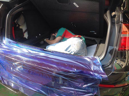 時にはトランクの内装をバラして中に潜り込み、