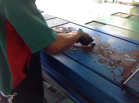 傷んだ部分の塗装を削ぎ落とし(ヤマカズが…)、