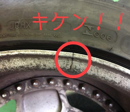 このまま新しいタイヤを組み付けても、さらに亀裂が大きくなったり、