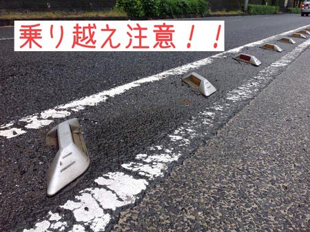 止むを得ずキャッツアイなど段差をまたぐ場合は、十分に速度を落とし、