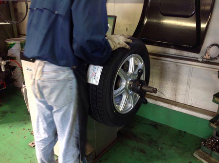 そんな中、照りつける陽射しを浴びながら、ご予約いただいたスタッドレスタイヤと