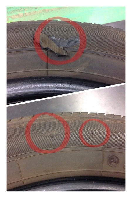 タイヤのサイドウォール(側面)に大きな傷があることを発見され、